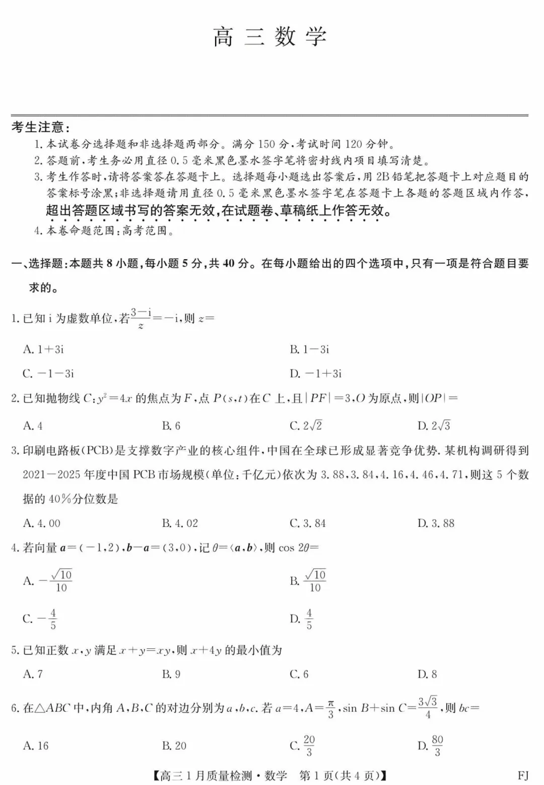 153.2026届高三第一次八省T8联考数学试卷及逐题解析(2025.12)