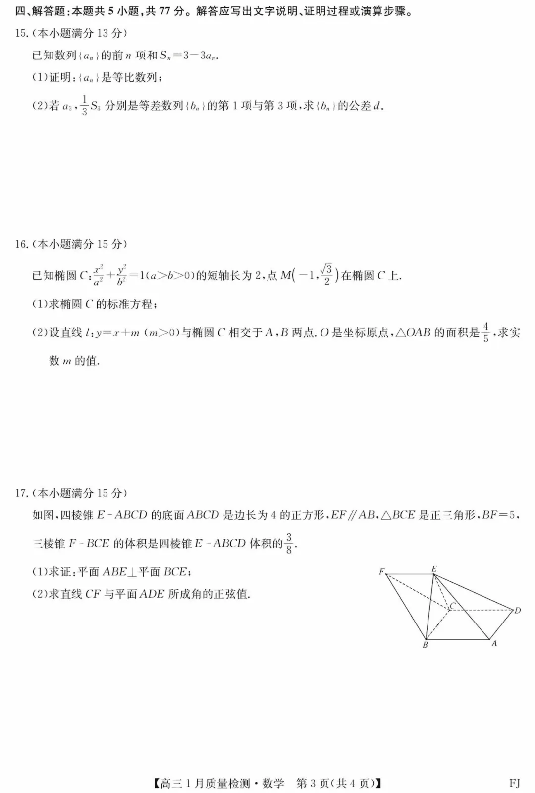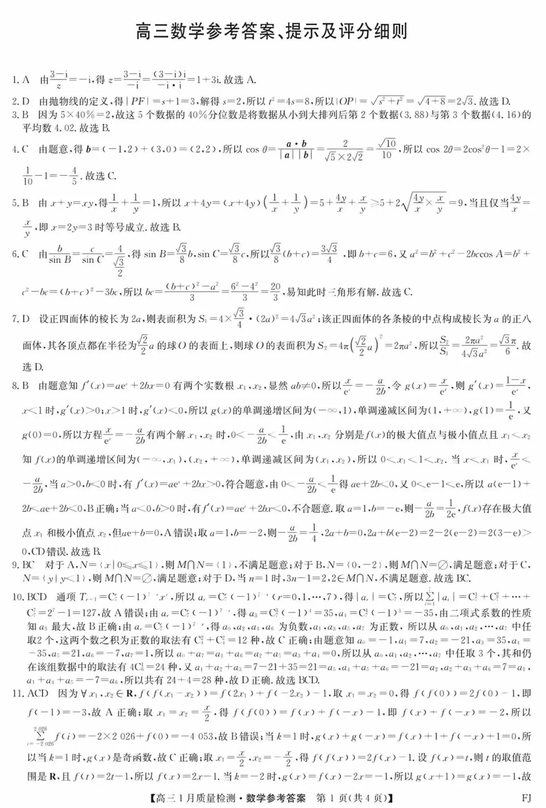 173.2026届江西金太阳高三期末考数学试卷及逐题解析(2026.1)