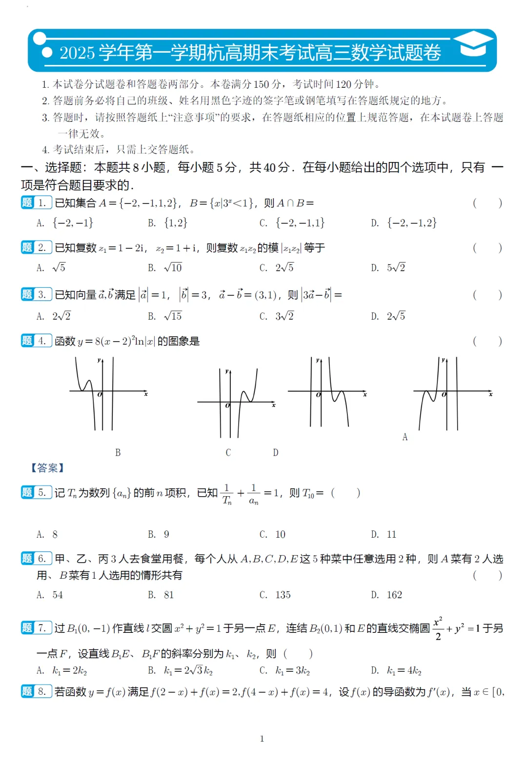 以前试卷:2025年8月以前高一、二试卷及解析汇集
