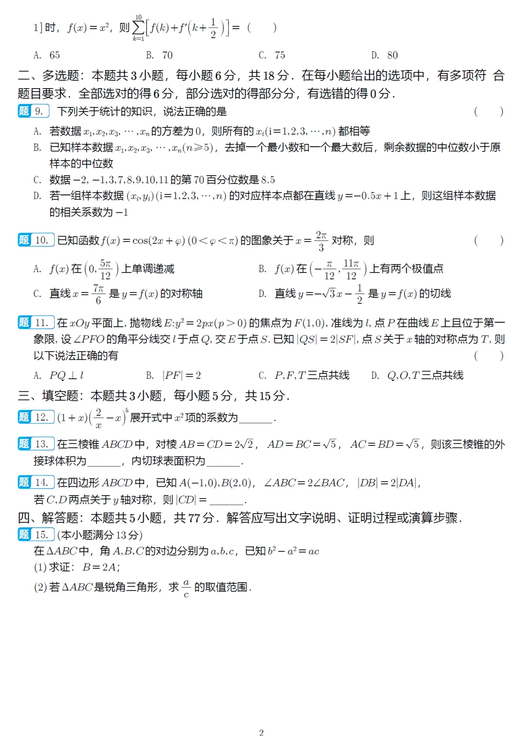 14.2026届河南TOP二十名校高三数学试卷及全解析(2025.10)