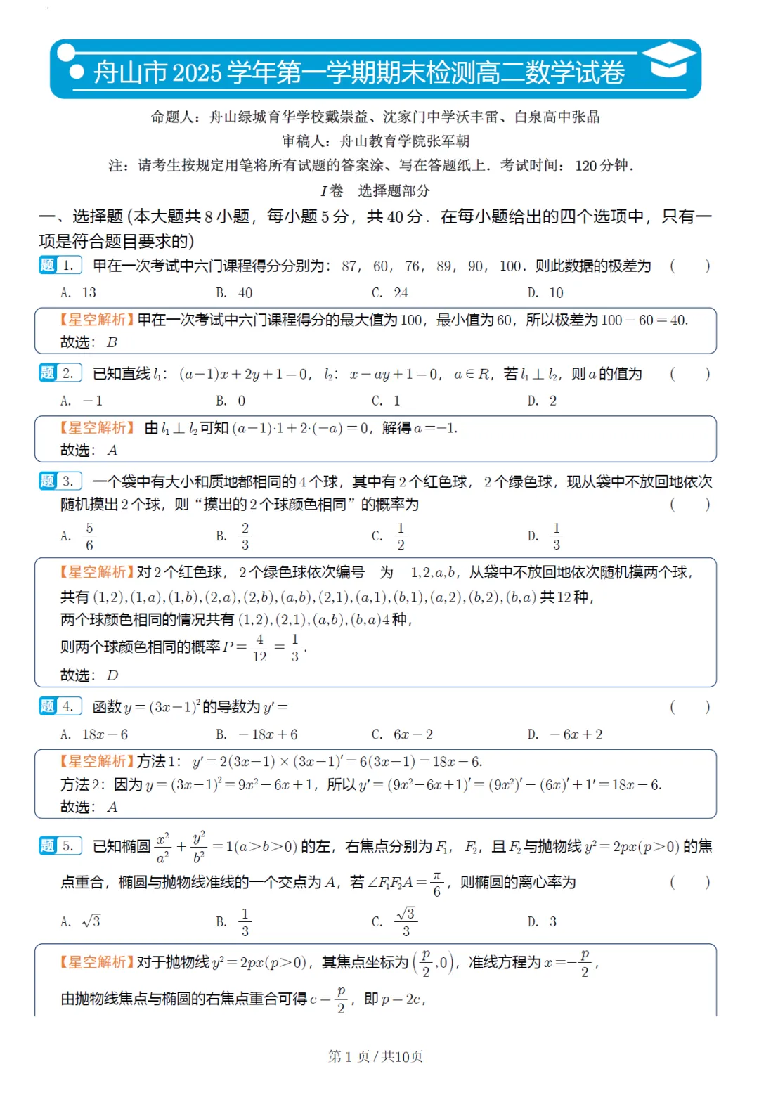 22.2025年10月浙江省杭州学军中学高二独立检测卷及全解析