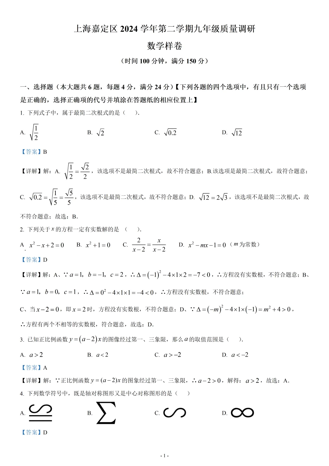 【试卷速递】2024-2025学年上海高一下期中考试试卷共17套(附解析可下载)