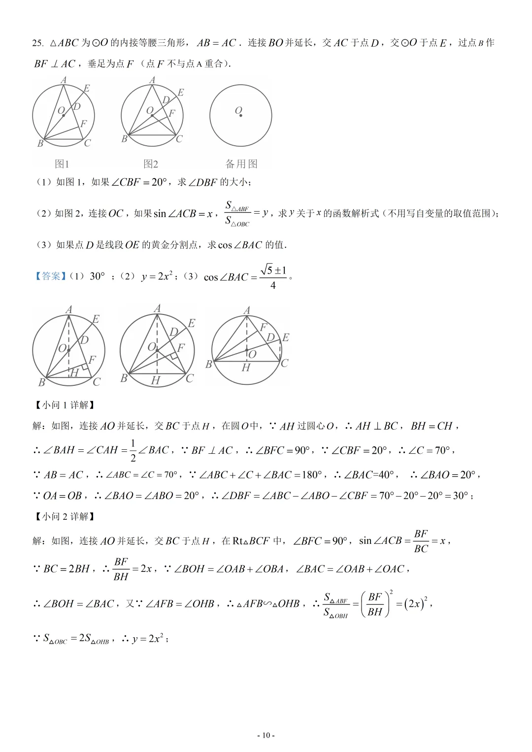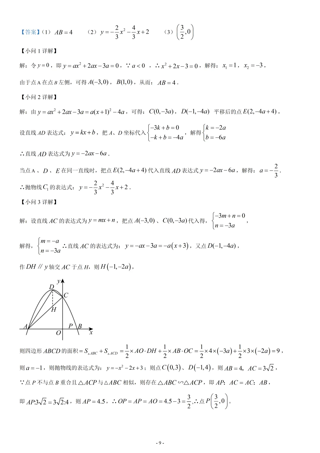 【近三年九年级中招模拟试卷】2023-2025年九年级数学中招模拟9套(可下载电子版)