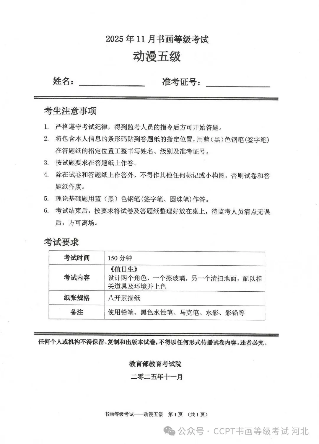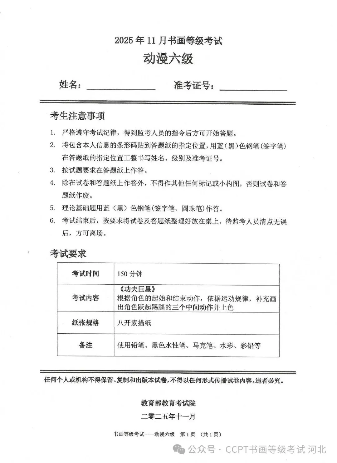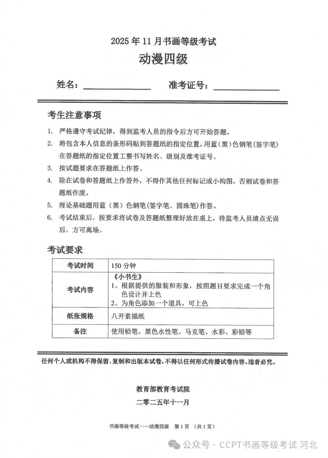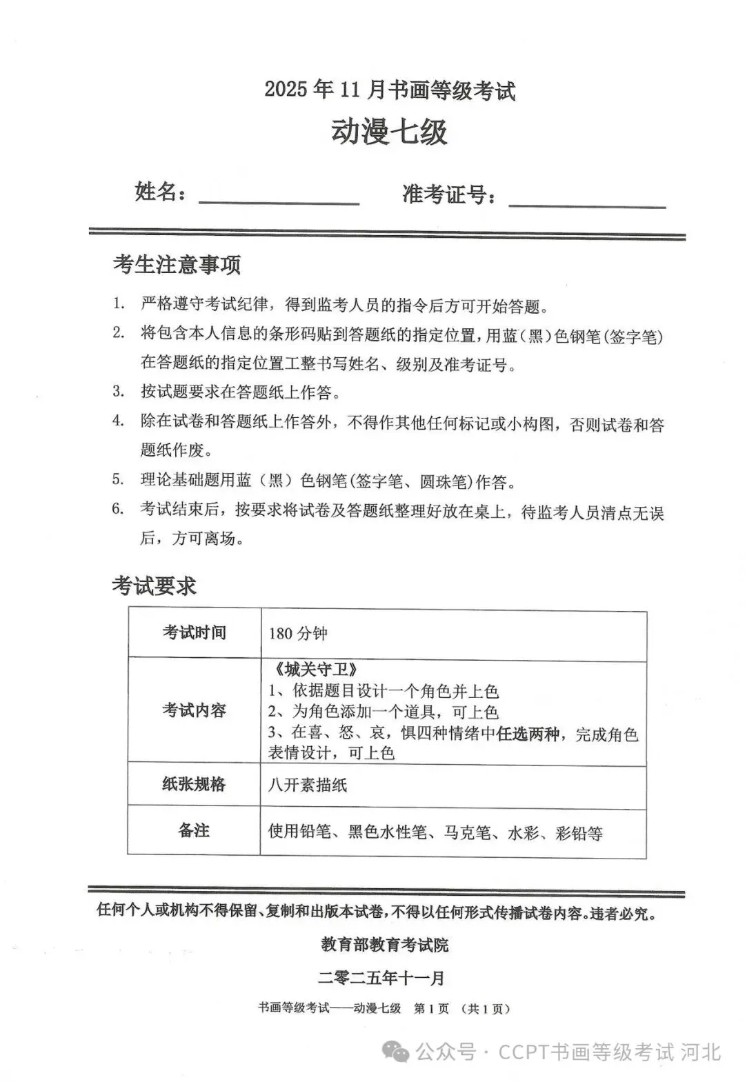 >2025年11月份教育部书画等级考试真题--动漫科目