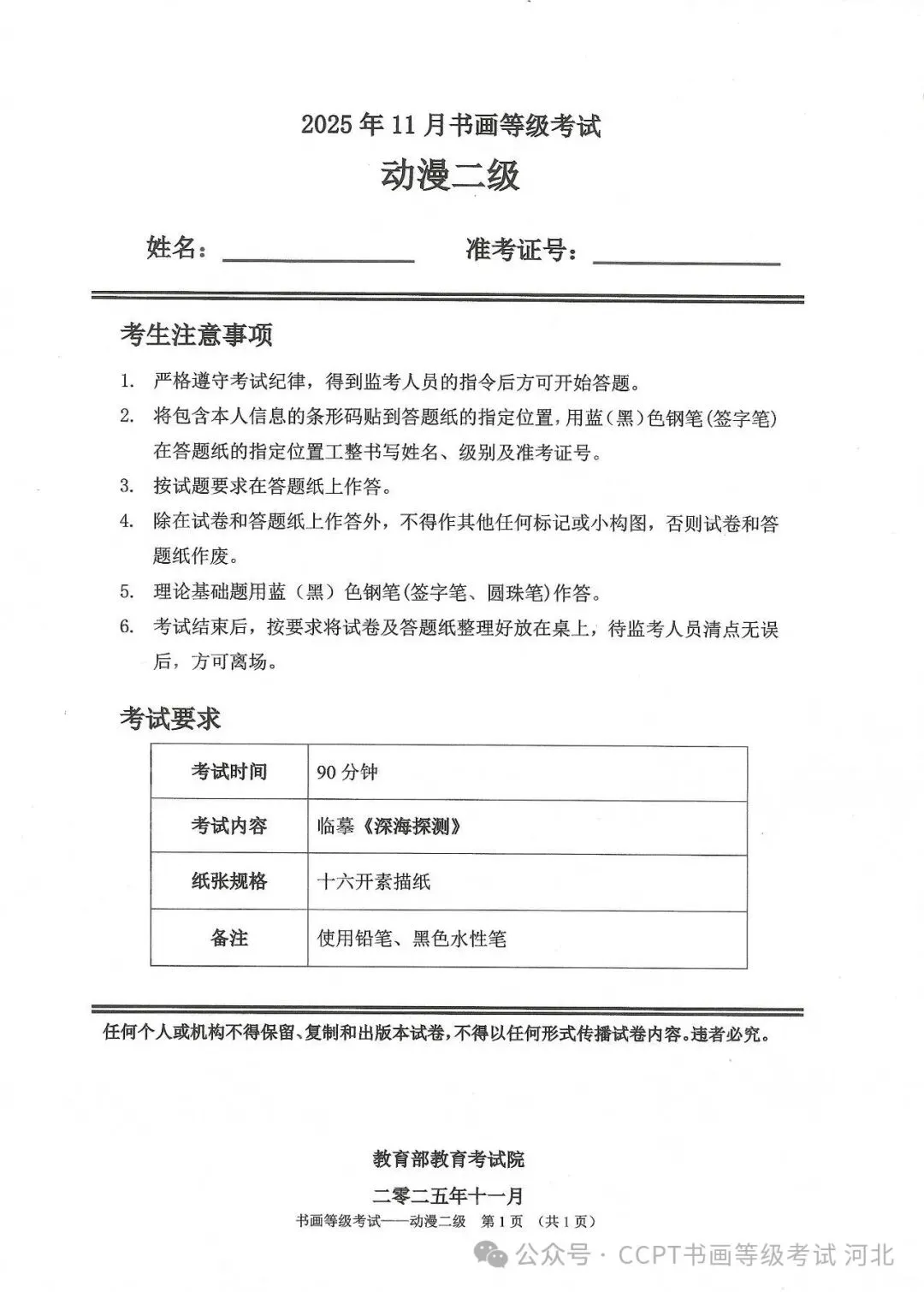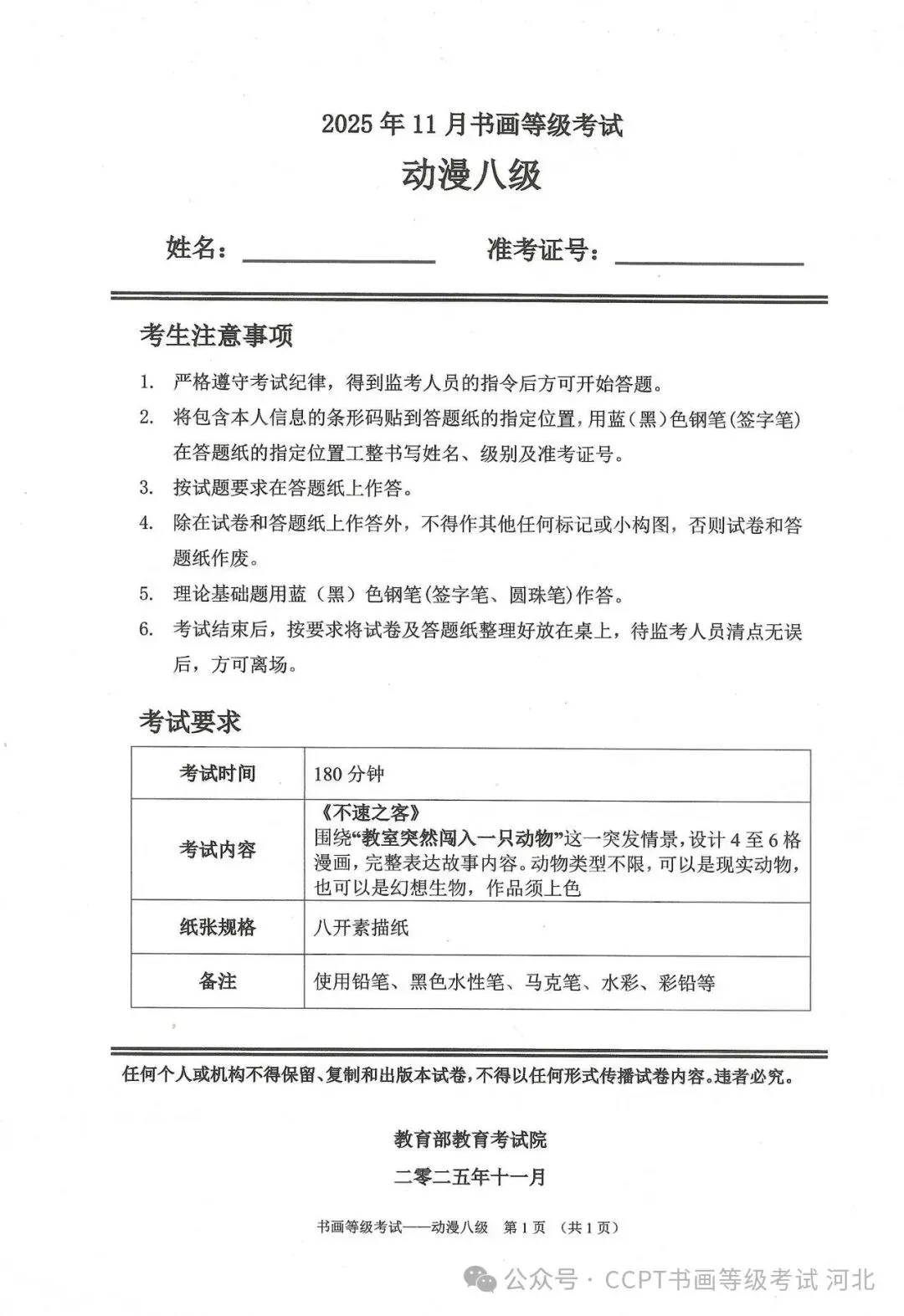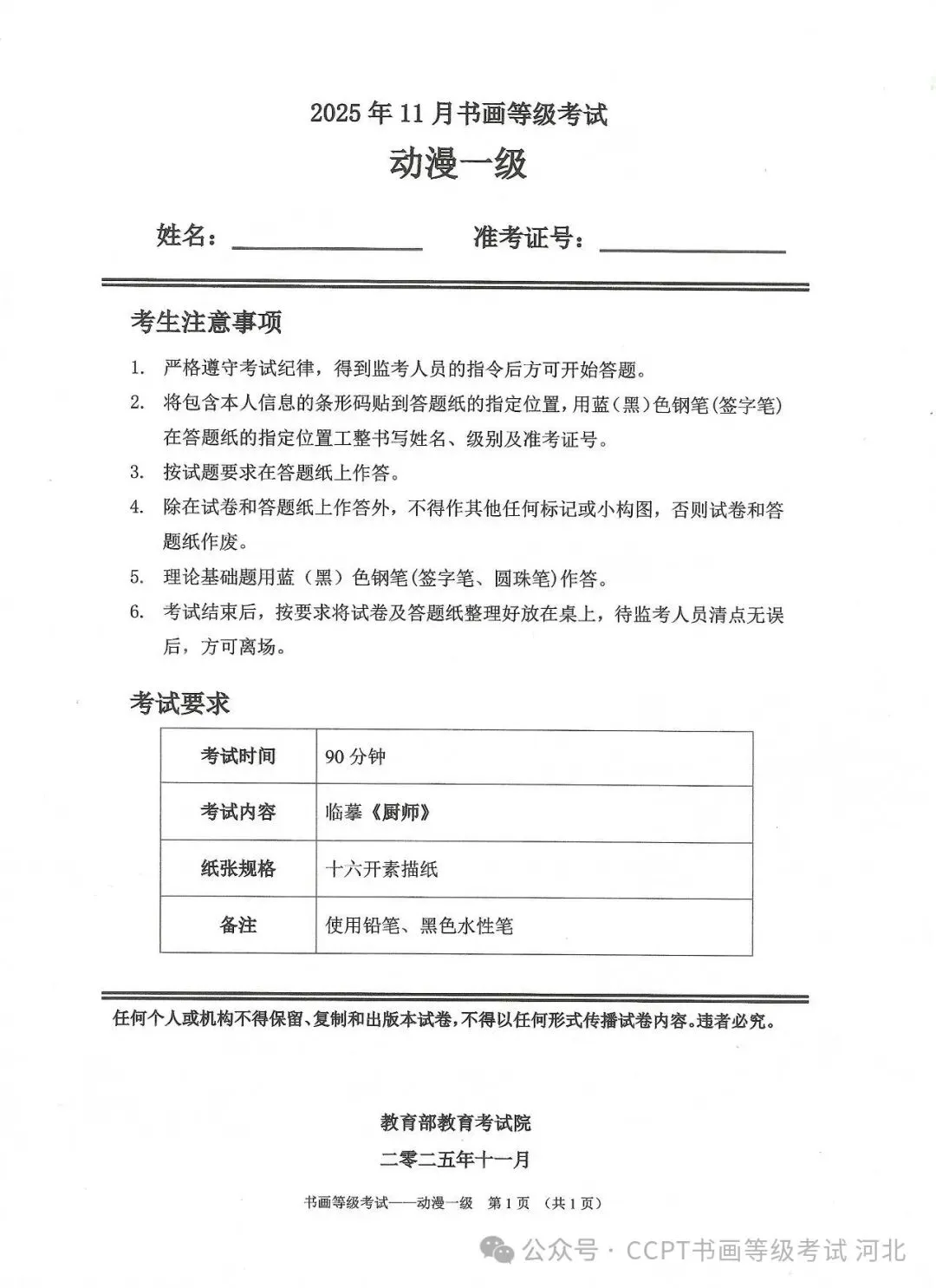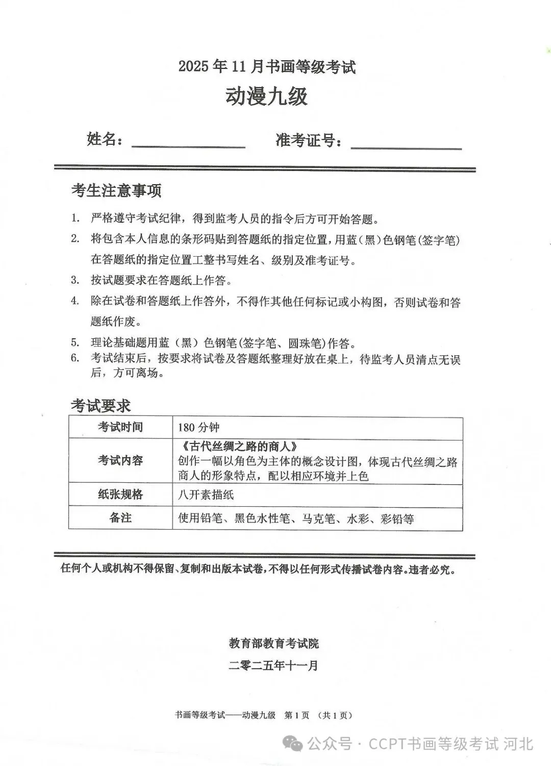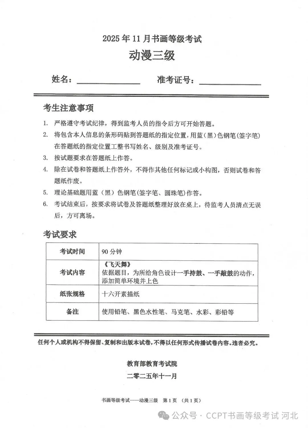 >2025年11月份教育部书画等级考试真题--动漫科目
