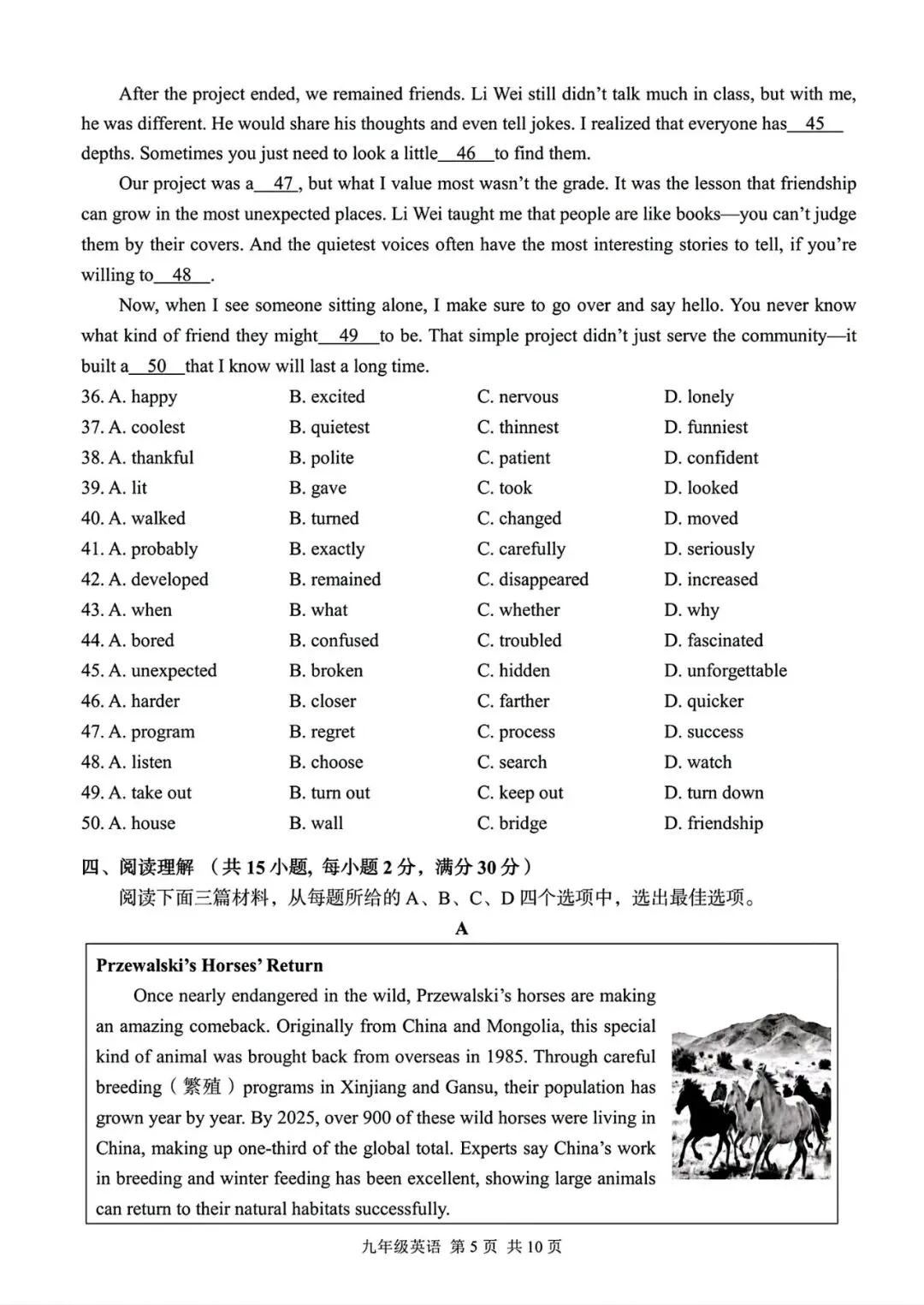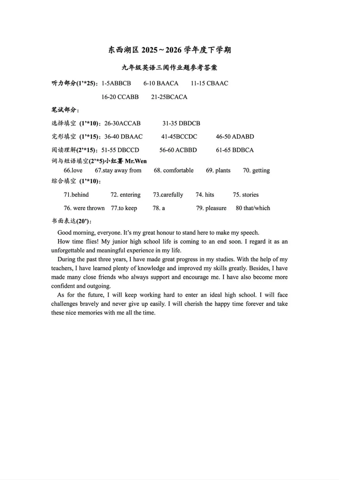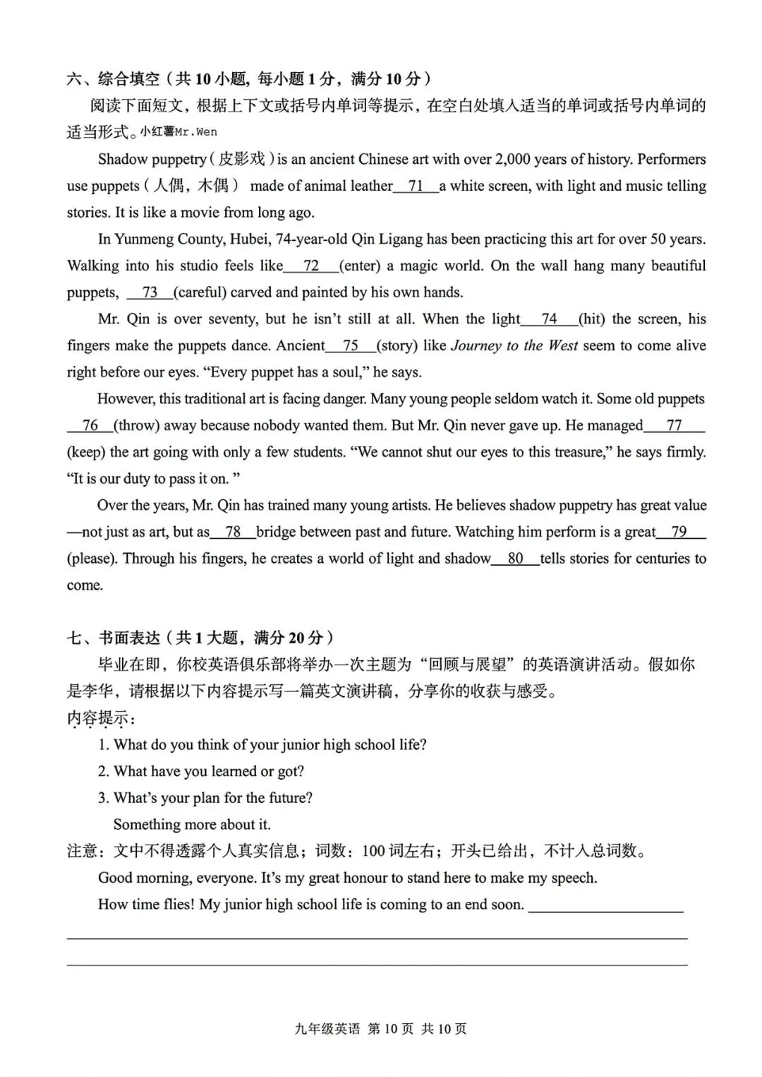 重磅推出:2025年武汉九年级5月各区名校英语试卷合集2(含答案、部分听力)