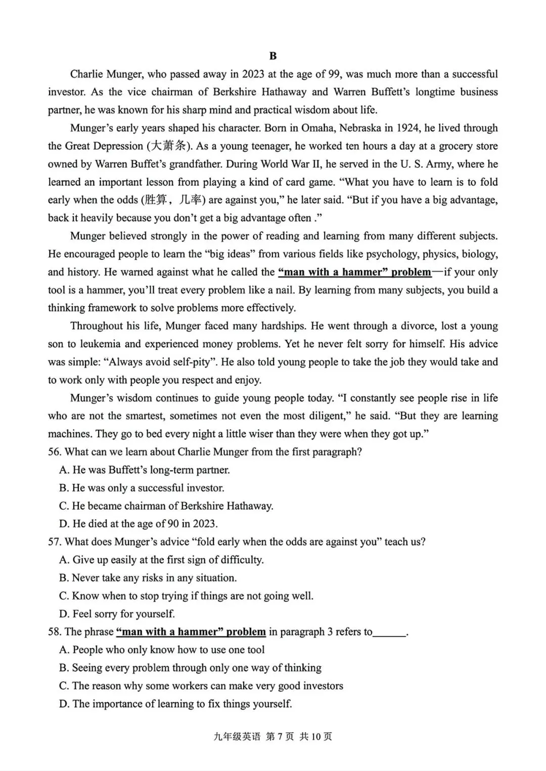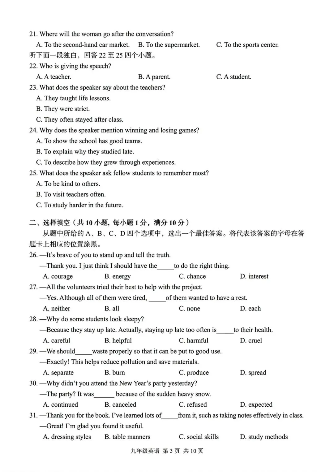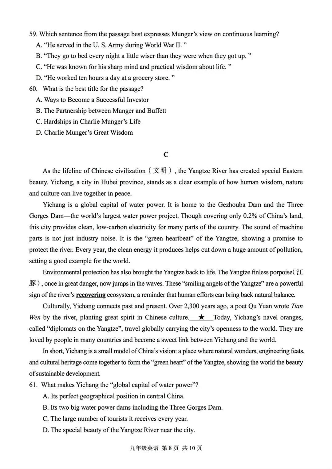 重磅推出:2025年武汉九年级5月各区名校英语试卷合集2(含答案、部分听力)