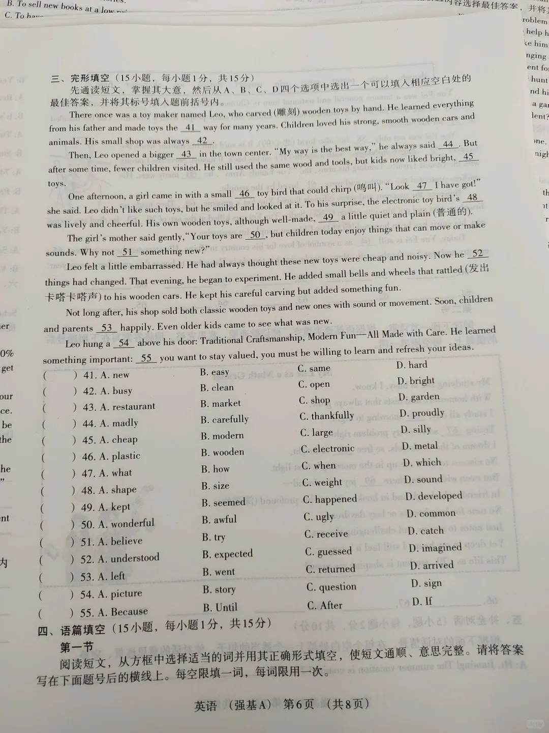 这是2025年高考真题试卷,看看强度,如果单