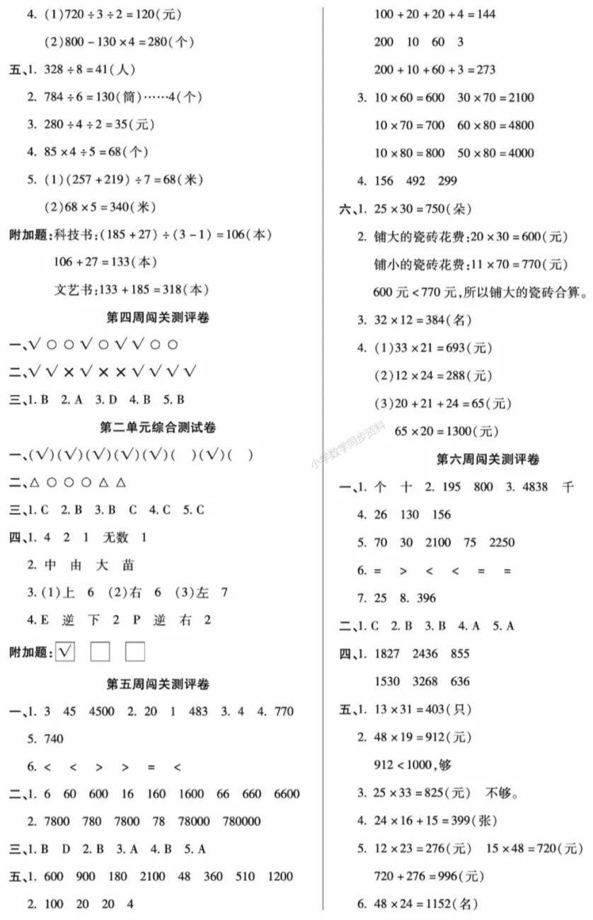 >【试卷习题】北师大版数学三下第四周 周考卷