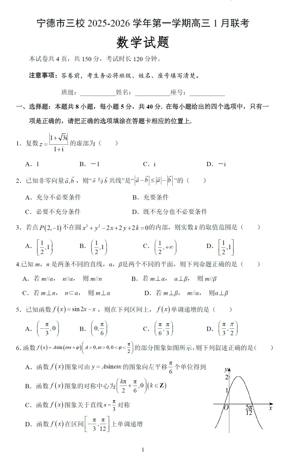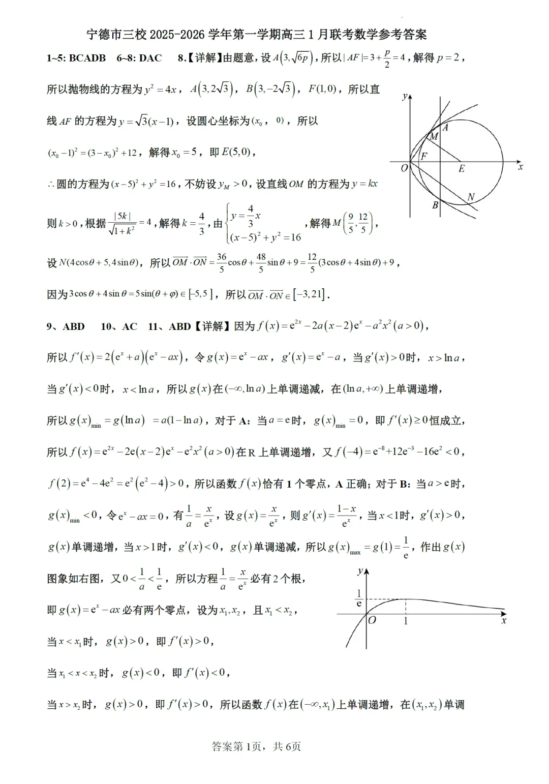 11.2025年8月福建省闽东教科联盟高三联考数学试卷及全解析