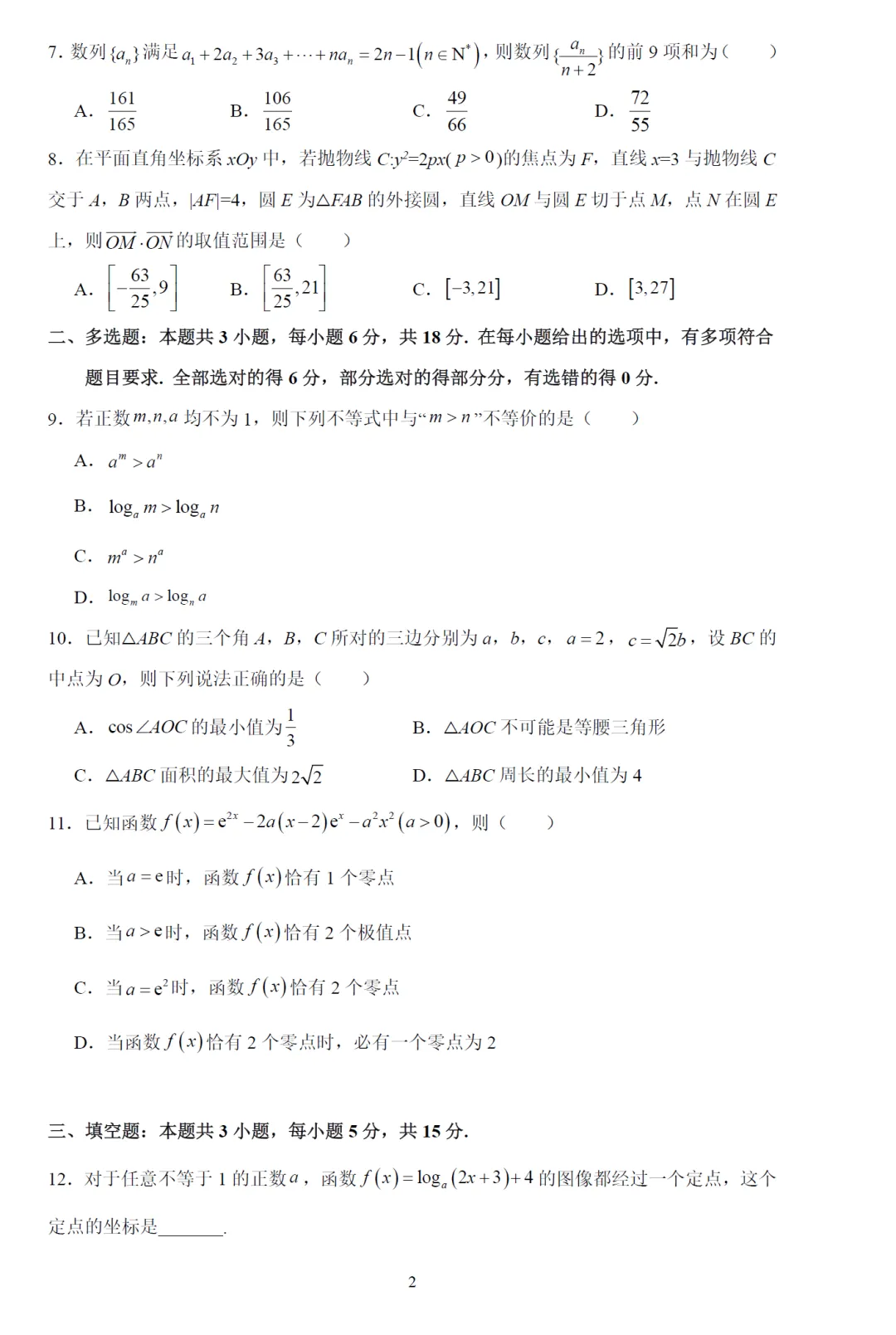 140.2026届广东领航高中联盟联考数学试卷及逐题解析(2025.12)