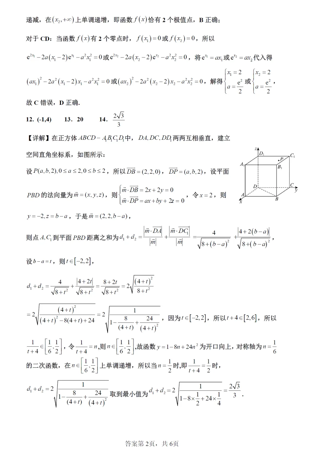 156.2026届高三清华学术标准能力测试试卷及逐题解析(2025.12)