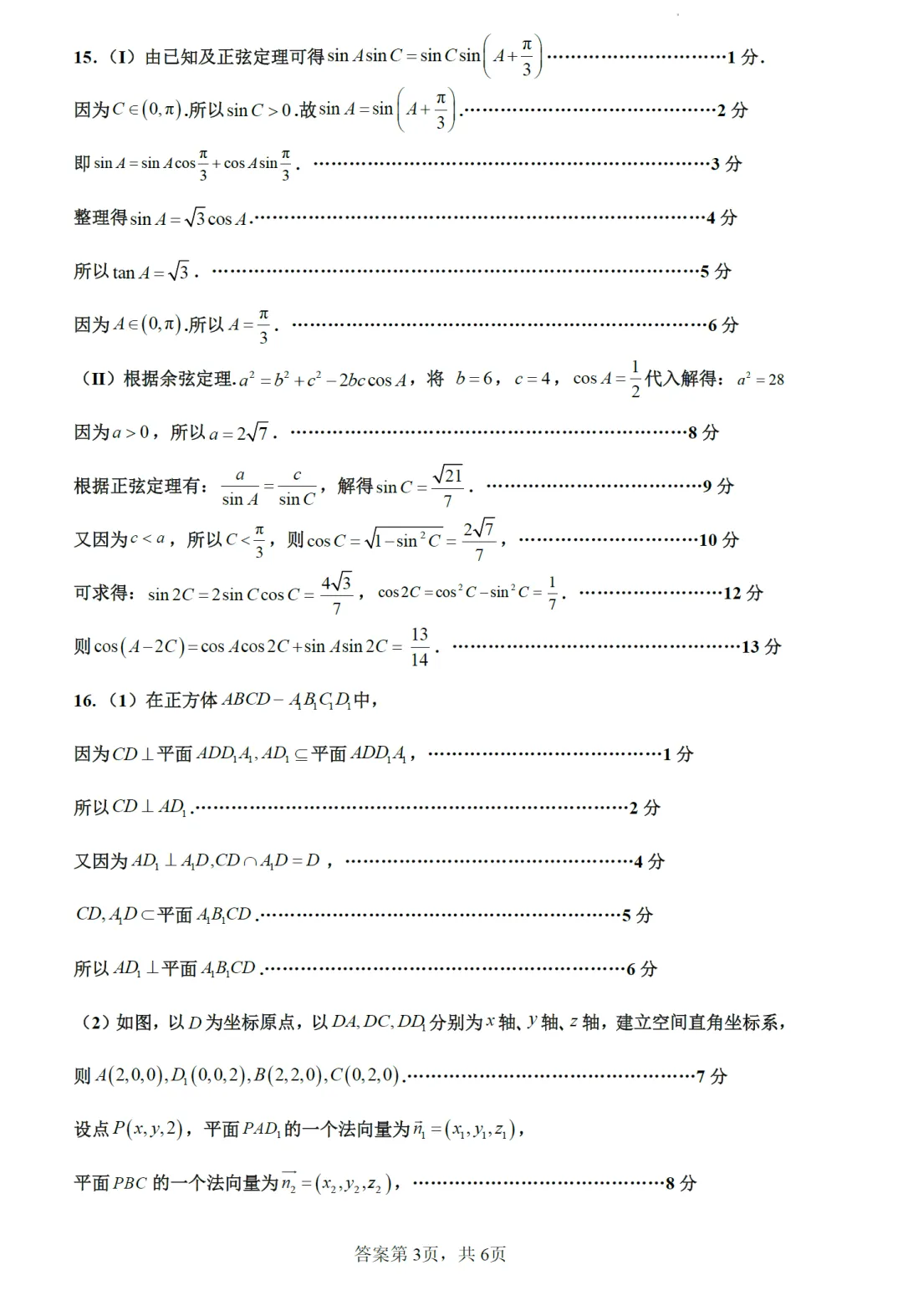 145.2026届江西省萍乡市12月高三数学试卷及逐题解析(2025.12)