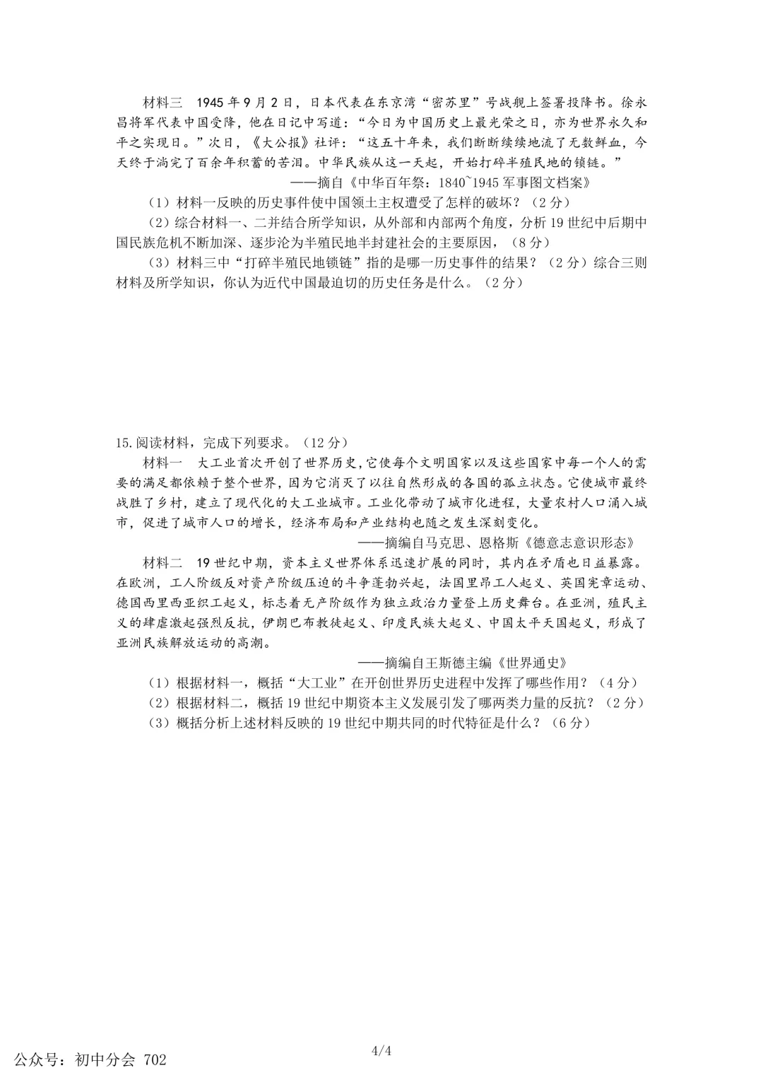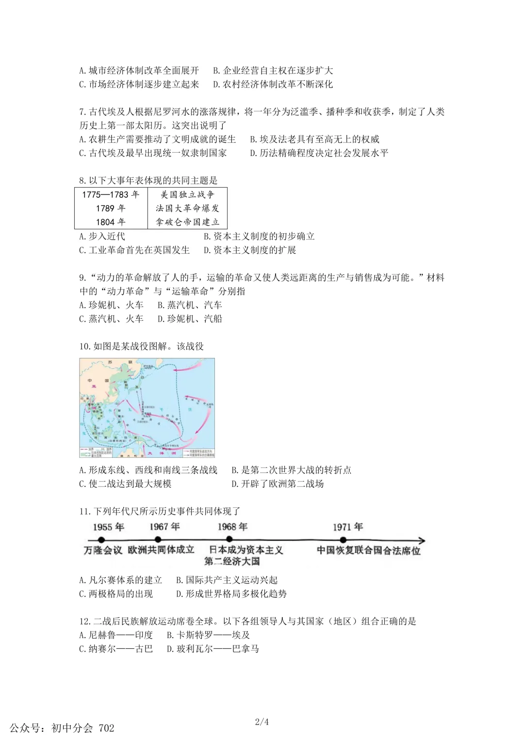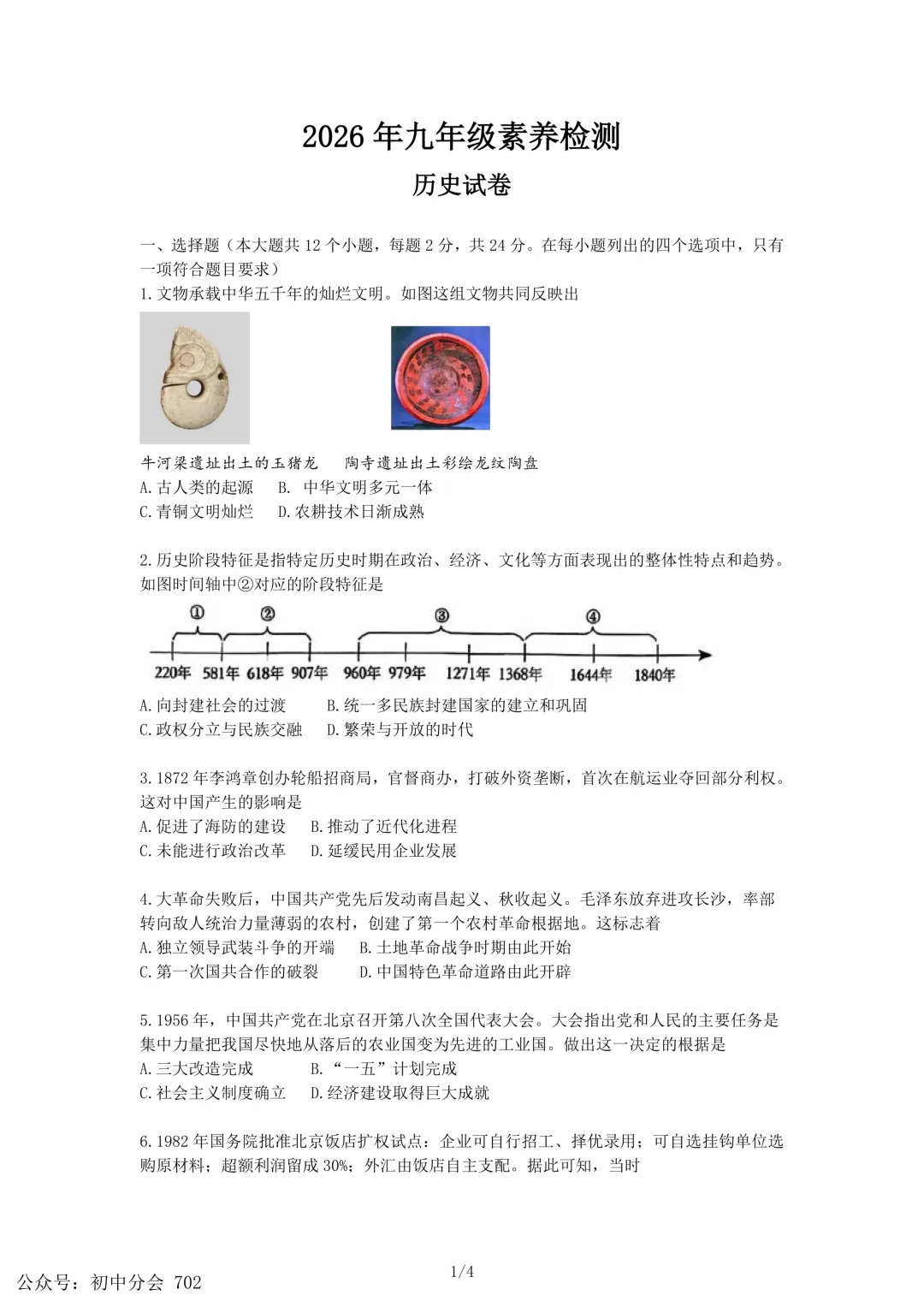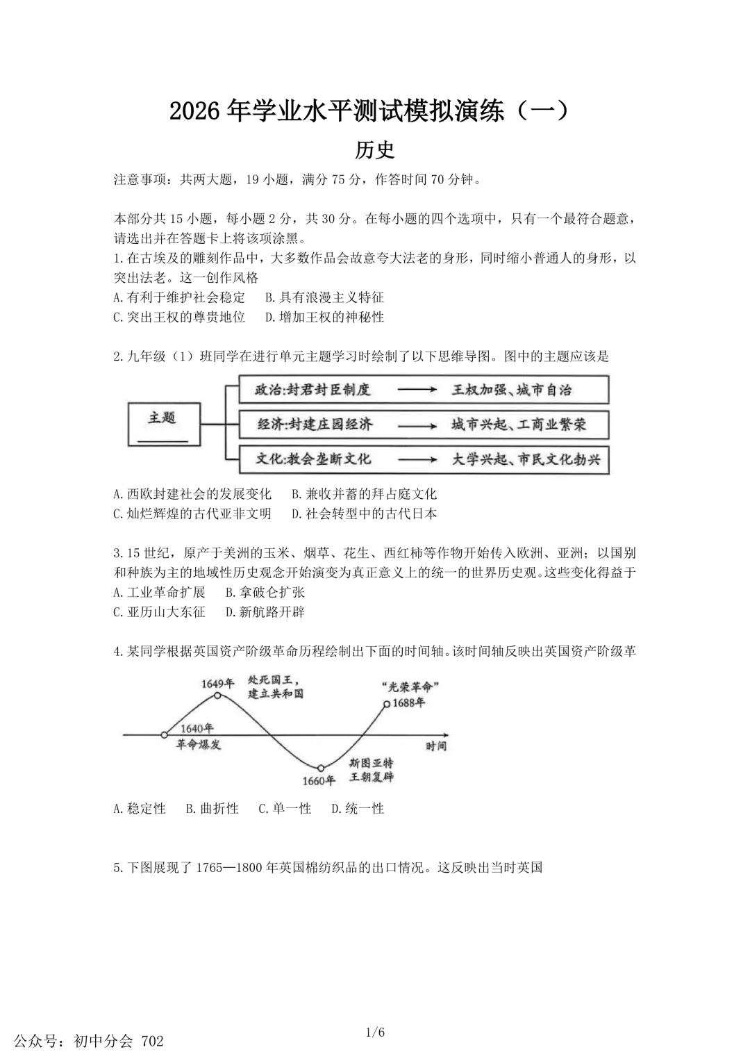 >2026年河北省中考模拟演练一二历史试卷及答案(可打印)
