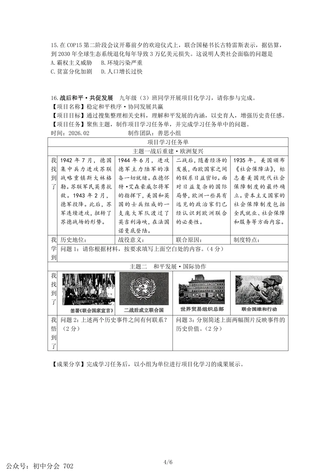2026年东西湖区九年级下三月月考试卷(PDF版含答案)