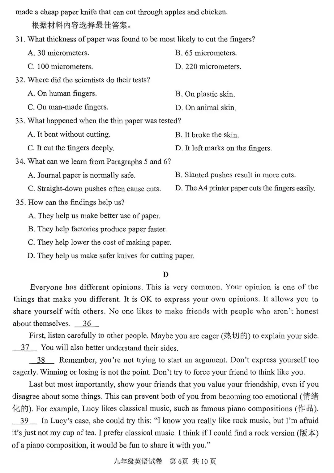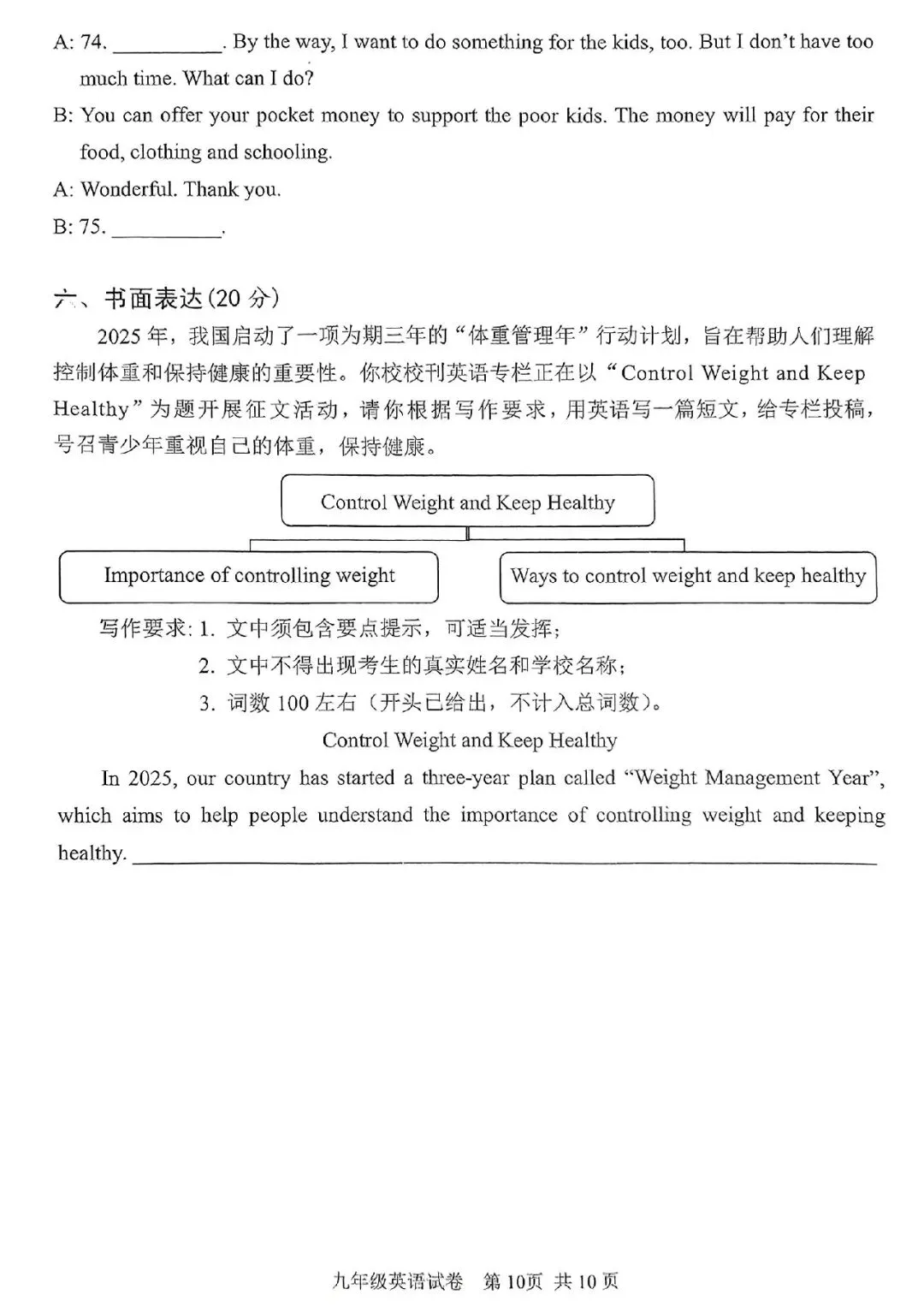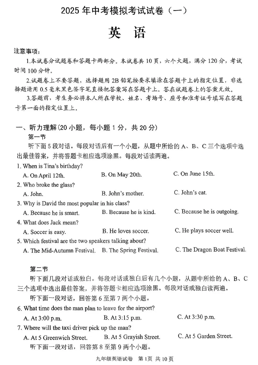 >2025年安阳市中考一模英语试卷及答案(文末可下载)