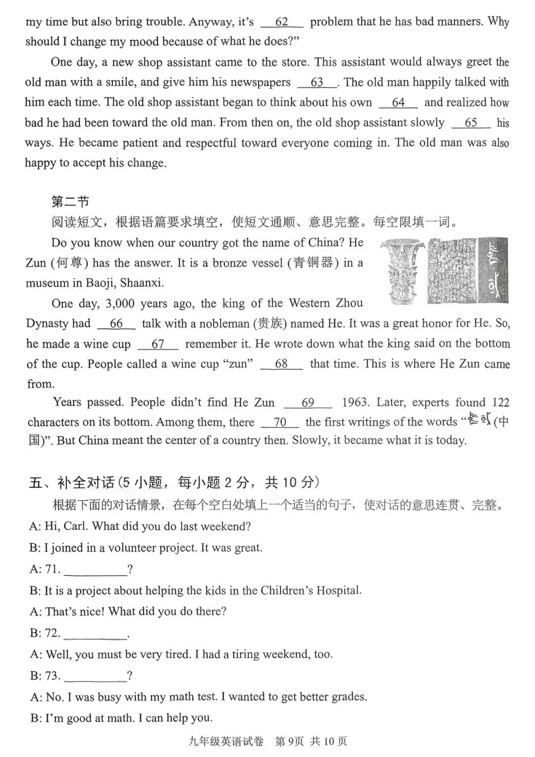 许昌市初三一模全科试卷(含答案)