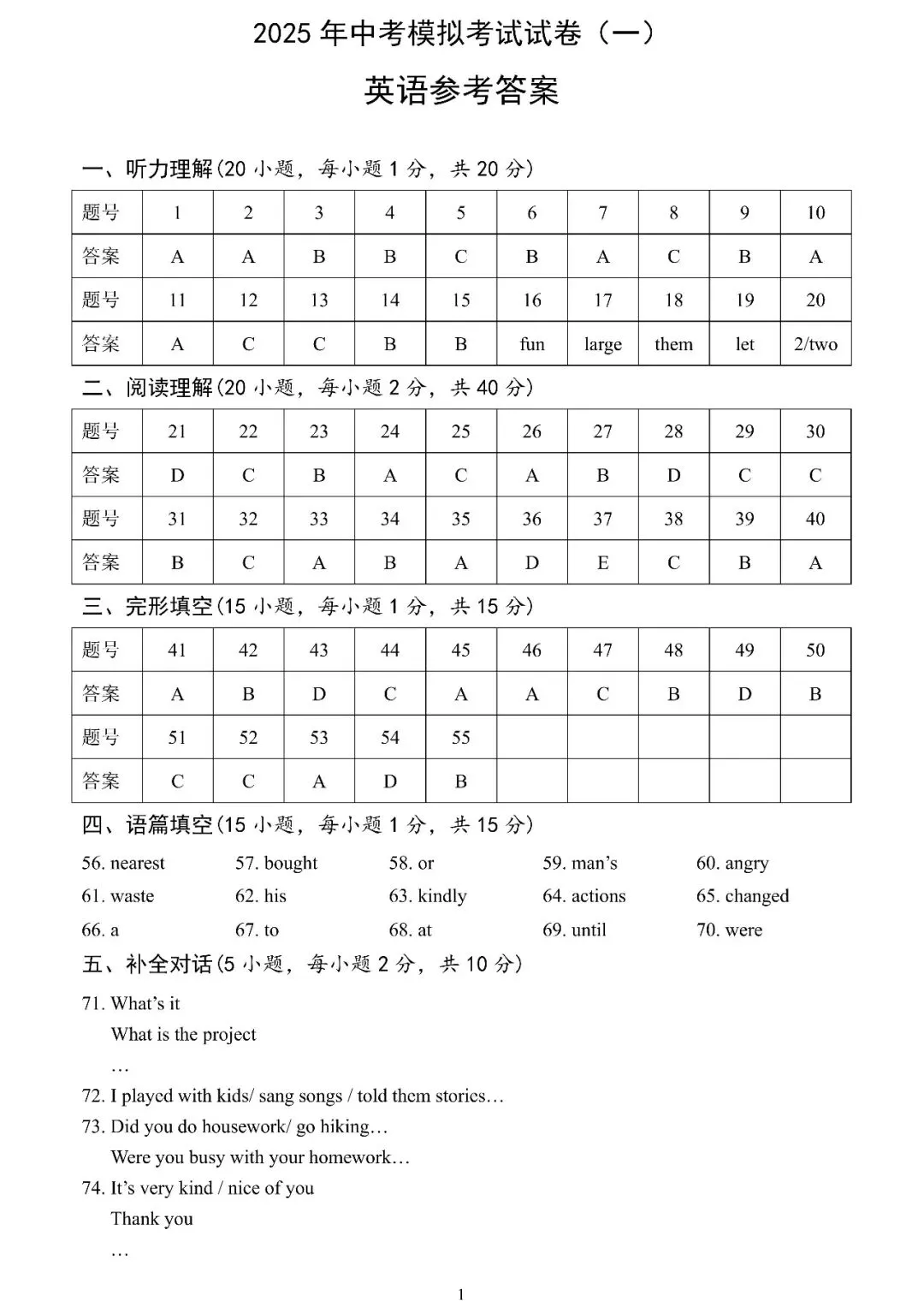 2025年安阳市中考一模英语试卷及答案(文末可下载)