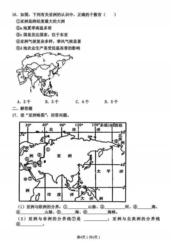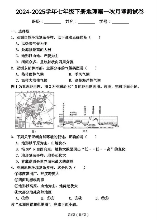 今日分享七年级下册地理第一次月考试卷2套(含答案)完整电子版可打印!所有资料均为高清电子版,排版规整适配打印,不用费心整理,直接打印就能用。精准击破学习难点,帮孩子夯实基础、吃透考点,稳步提升学习效率!