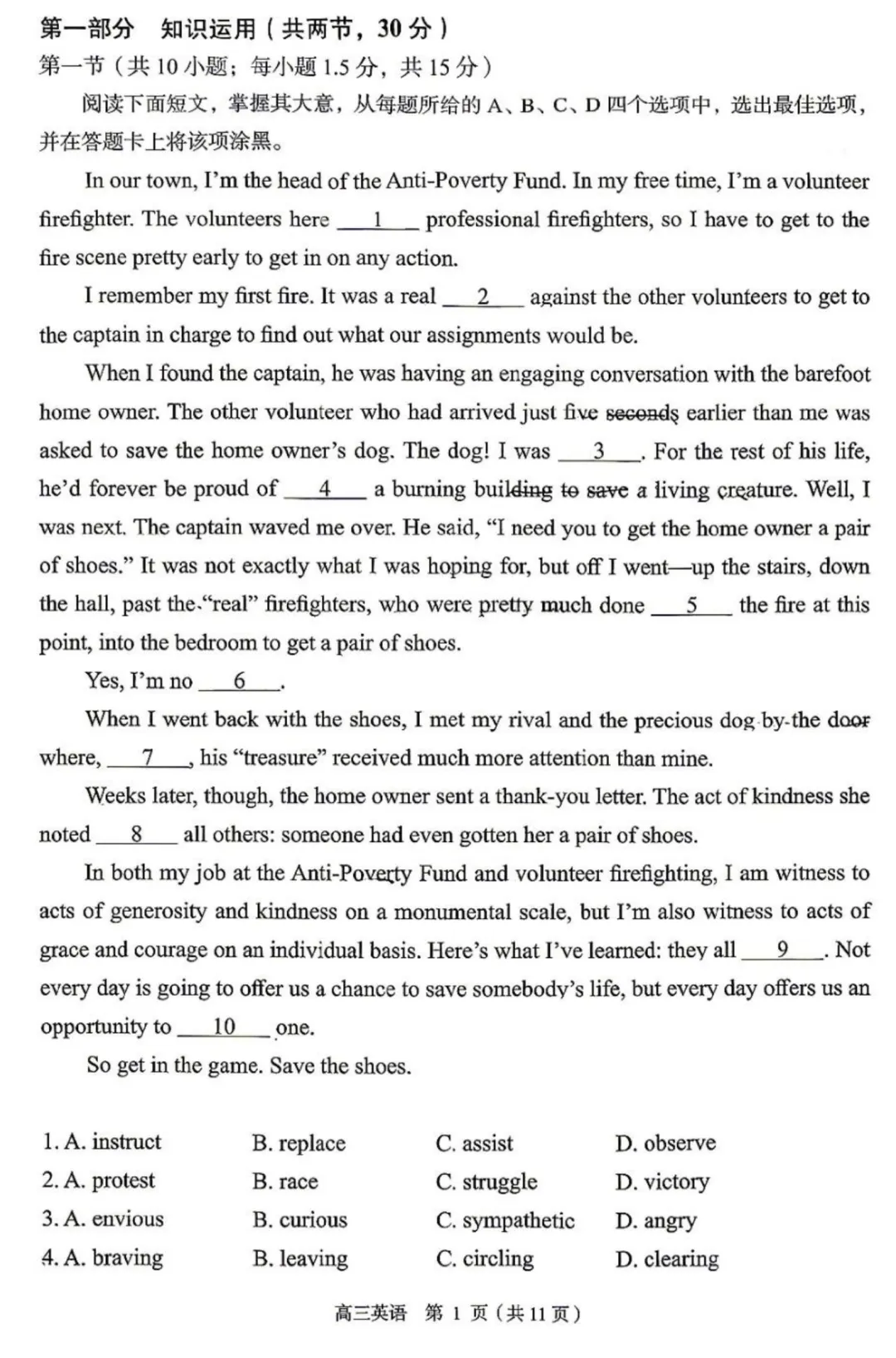 文章主旨总结:本文通过对比"救狗"与"取鞋"两个任务,阐明了一个哲理:善举不分大小,每一个微小的善意都能对他人产生深远影响。文末"Save the shoes"与"save a life"形成巧妙呼应,升华主题。【刘凯老师总结:作者身为志愿消防员,首次参与救火时羡慕同伴能进火场救狗,自己仅被指派为房主取鞋。然而,正是这双鞋成为房主感谢信中特别提及的善举。文章通过"救狗"与"取鞋"的对比,阐明善举无分大小,微小善意同样能深刻影响他人,升华出"不是每天都能救人生命,但每天都能影响一个人"的人生哲理。】