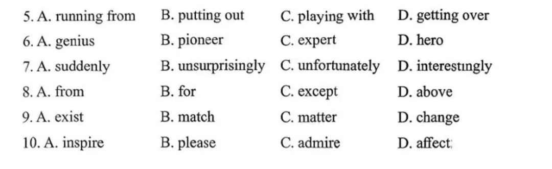 刘凯老师解析:语境分析:不是每天都有机会救人生命,但每天都有机会____一个人;逻辑递进:从"save life"到"affect one",程度递减但意义不减;词汇辨析:affect 表示"影响",涵盖范围最广——可以是情感上、生活上或命运上的影响;干扰项:inspire(激励)、please(取悦)、admire(钦佩)都过于具体,不如affect全面深刻