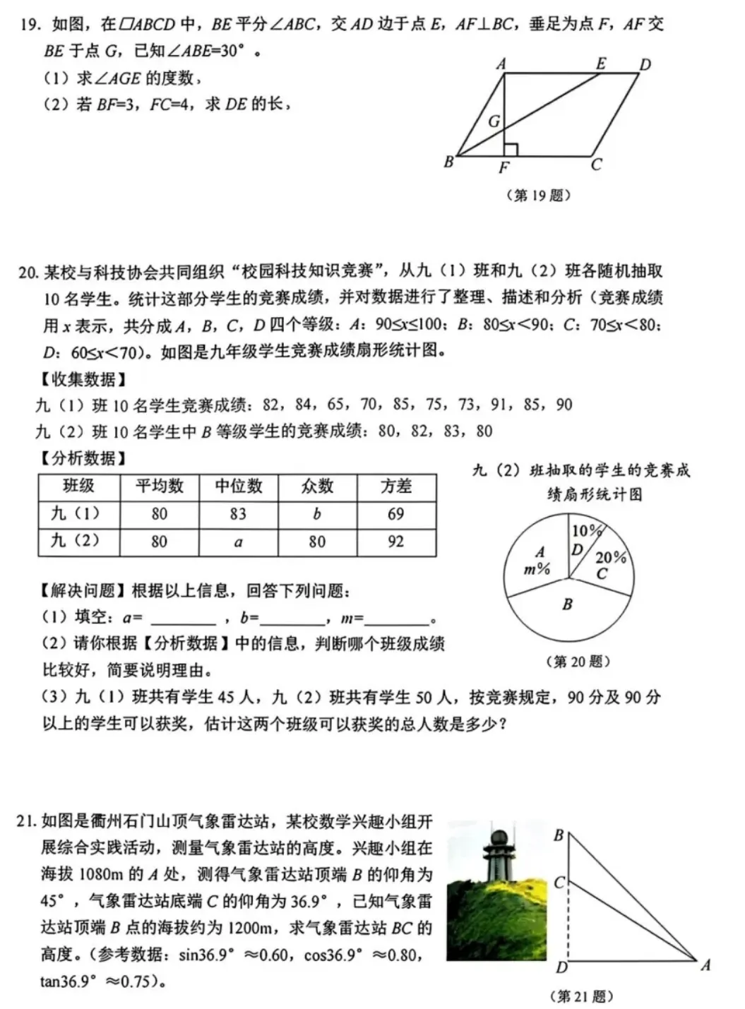 说明:本试卷和柯城区的一模试卷部分题目一致