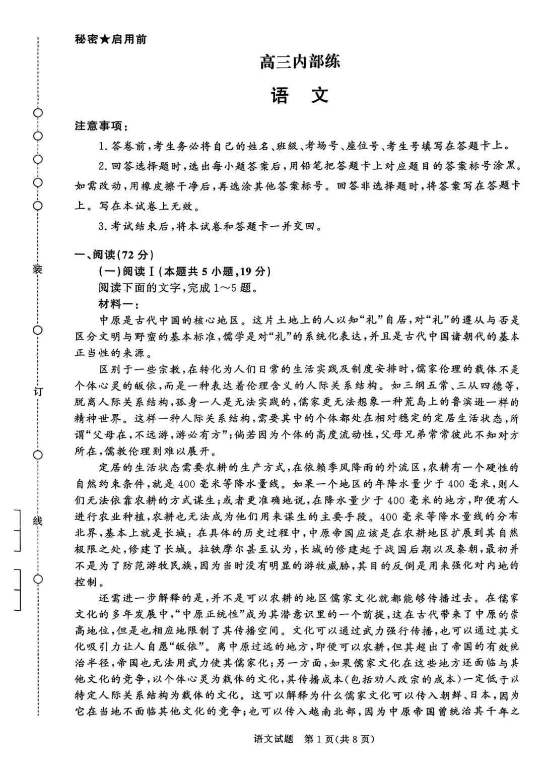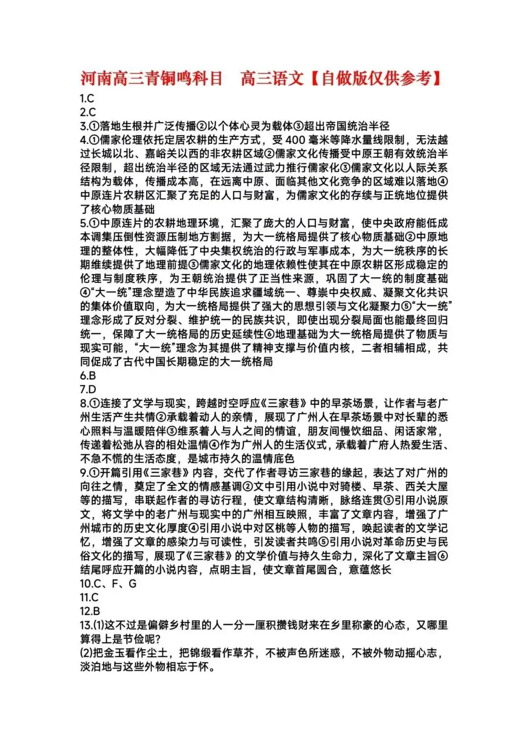 考试名称:2026届河南省青桐鸣高三4月大联考内部练新乡二模
