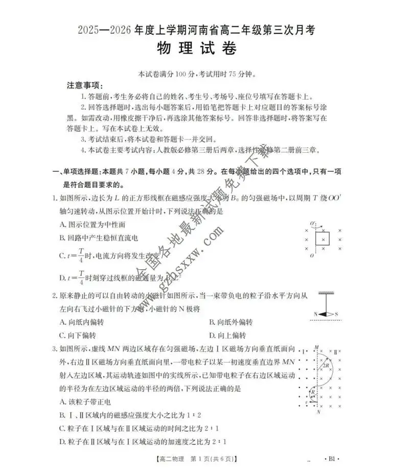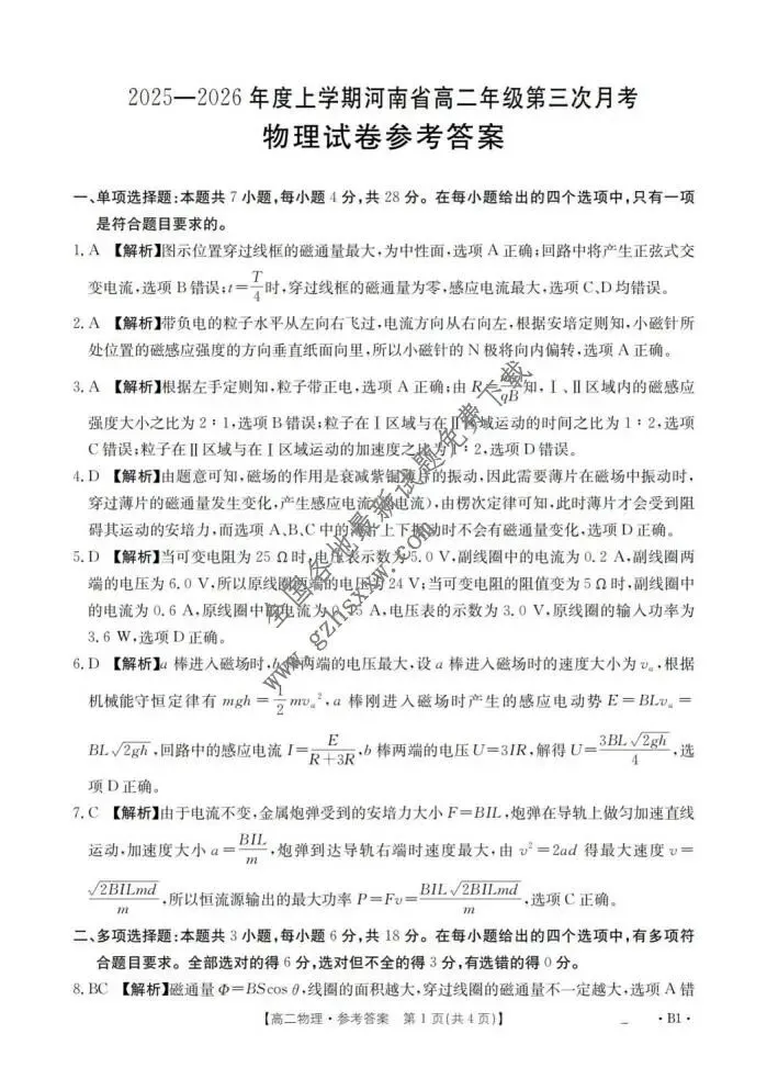 >《高中试卷》河南省2025-2026学年高二上学期第三次月考物理(含答案)