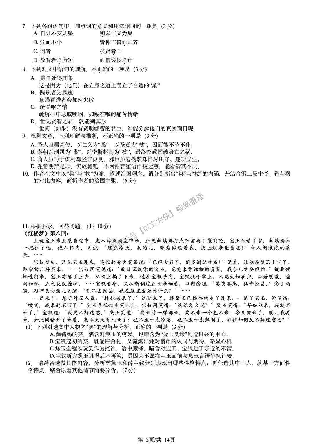 延庆高三一模语文试卷及答案2026