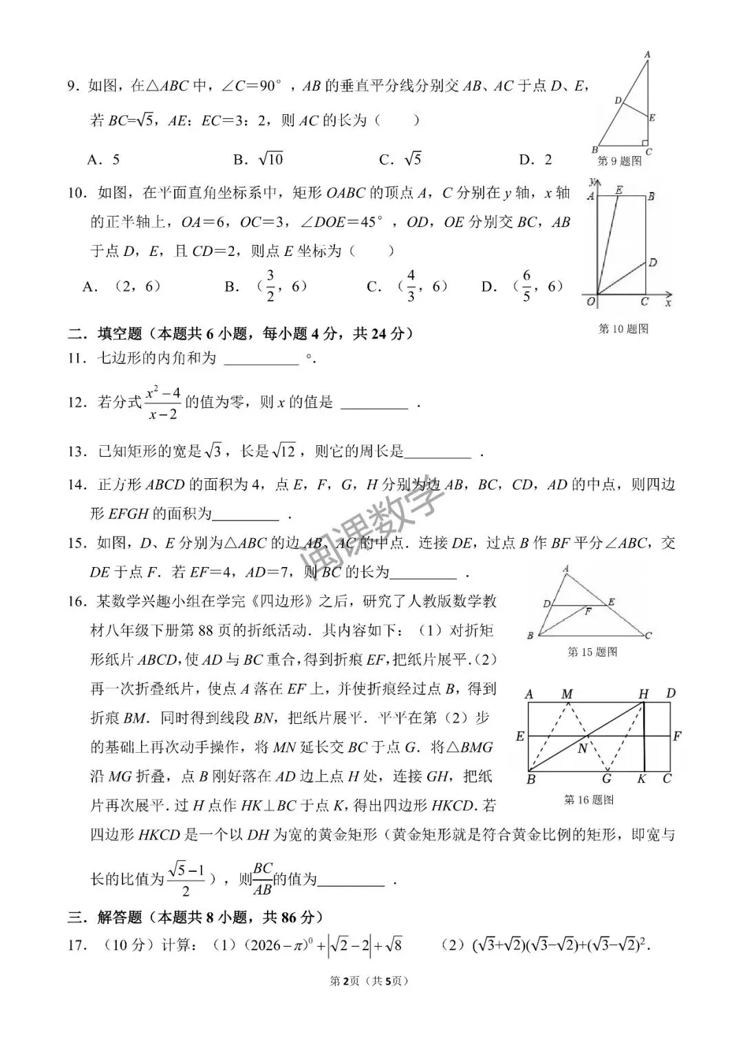 初二下期中考