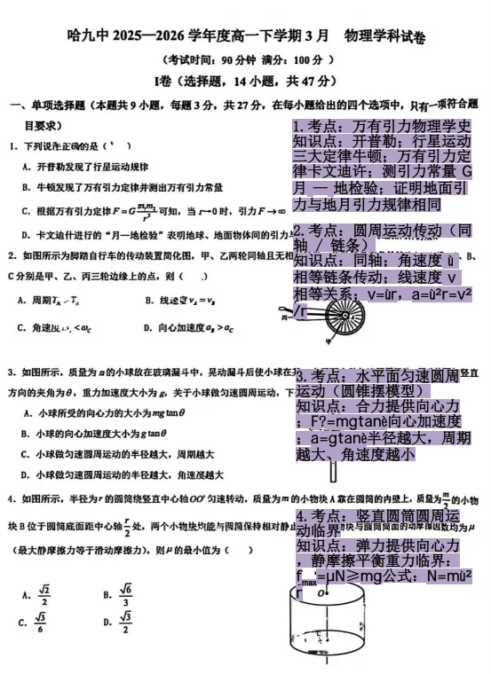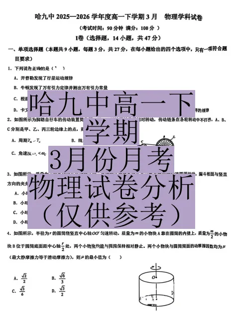 2026青桐鸣高三4月份高三内部练试卷+答案(PDF版)