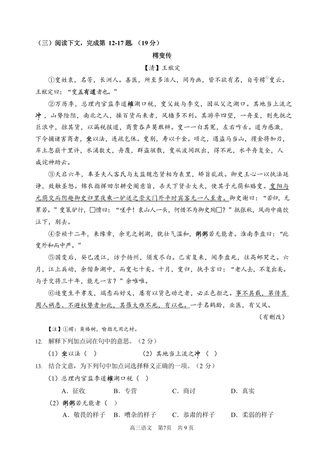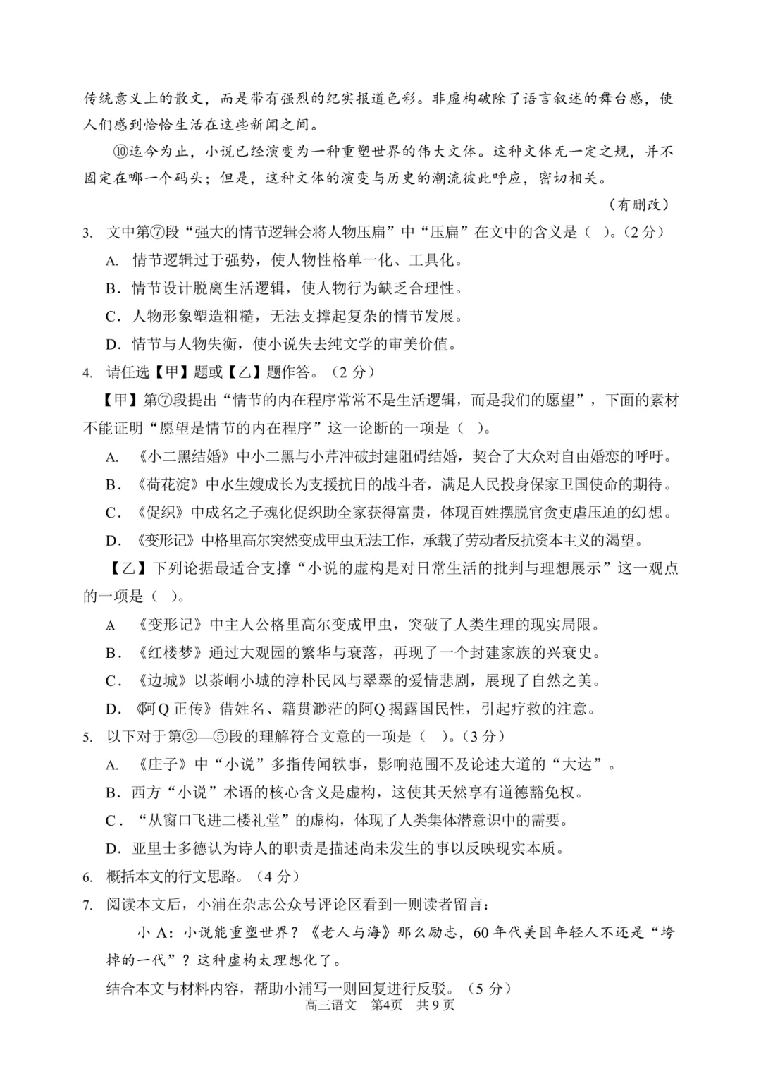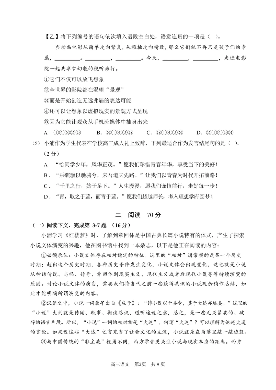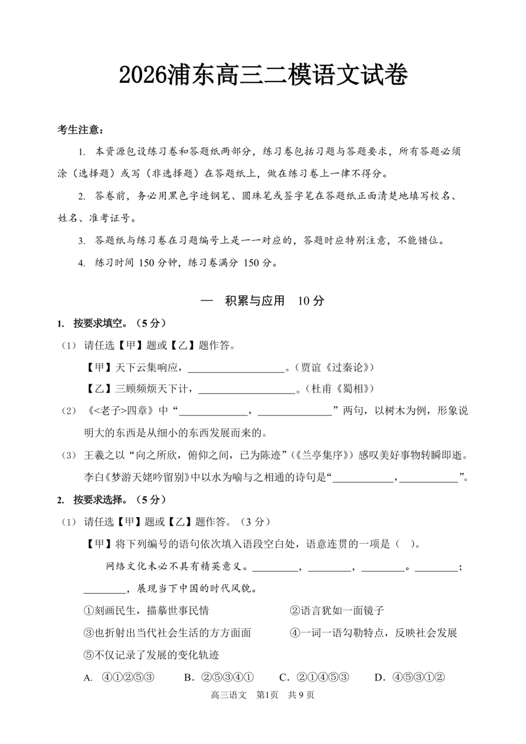 >2026浦东高三二模语文试卷及答案分享