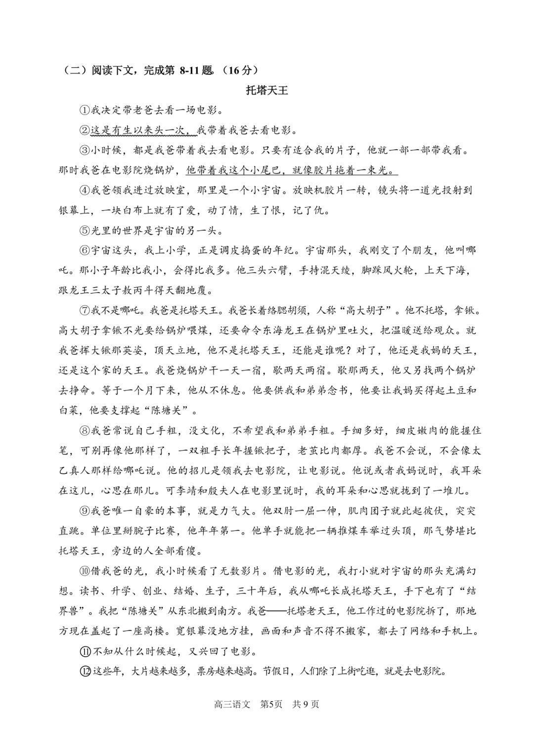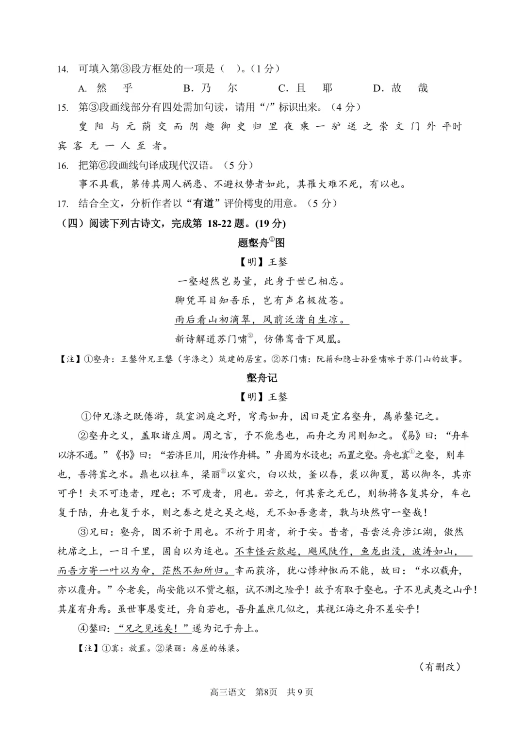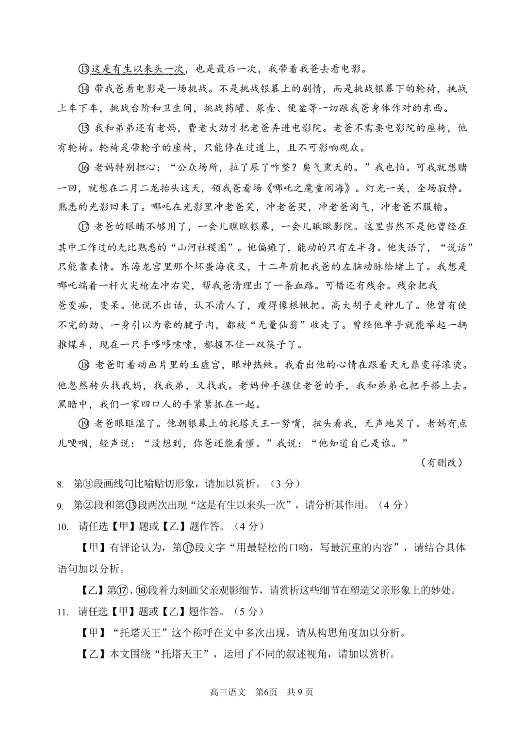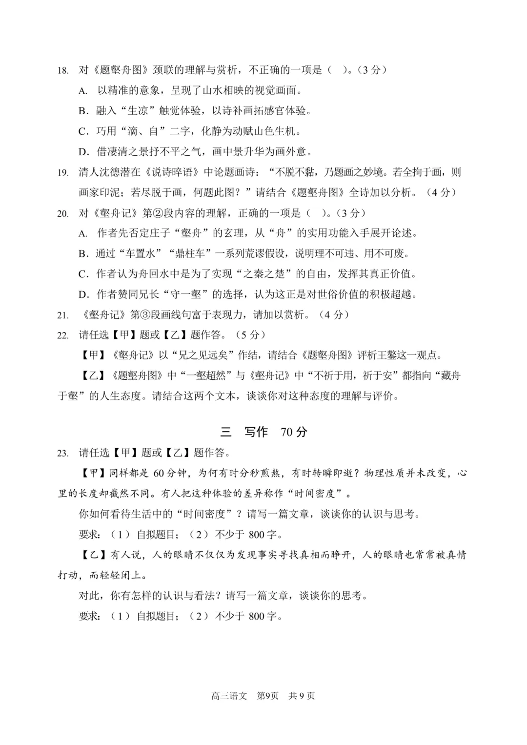 2026北京顺义高三一模语文试卷(含答案)