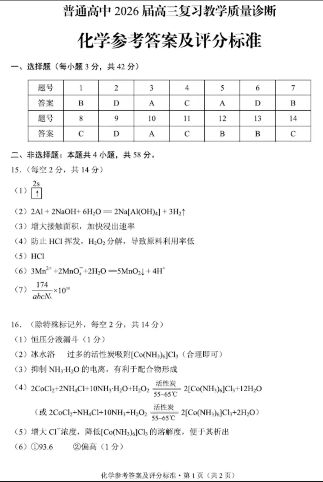【试卷合集】最新2026厦门高三二检化学、地理试卷+答案