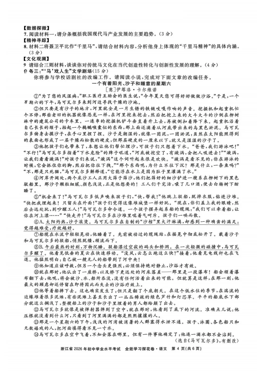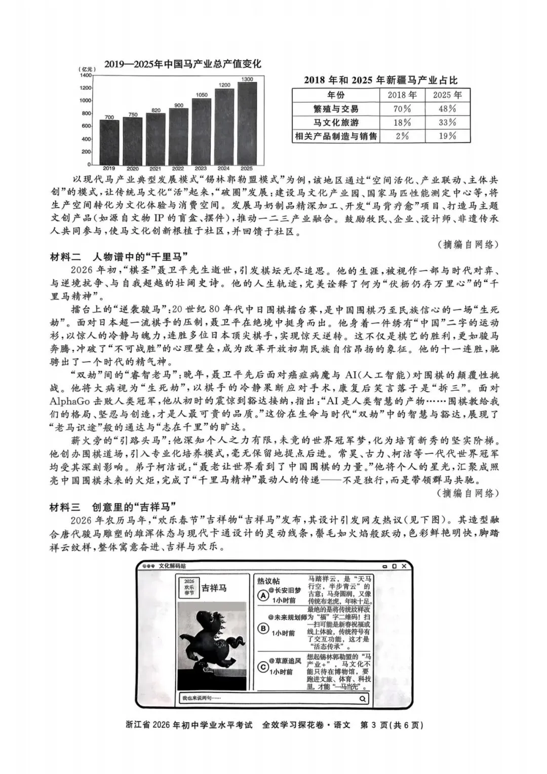 核心考点:概括马产业发展趋势、分析聂卫平的“千里马精神”、理解传统马文化的创造性转化。