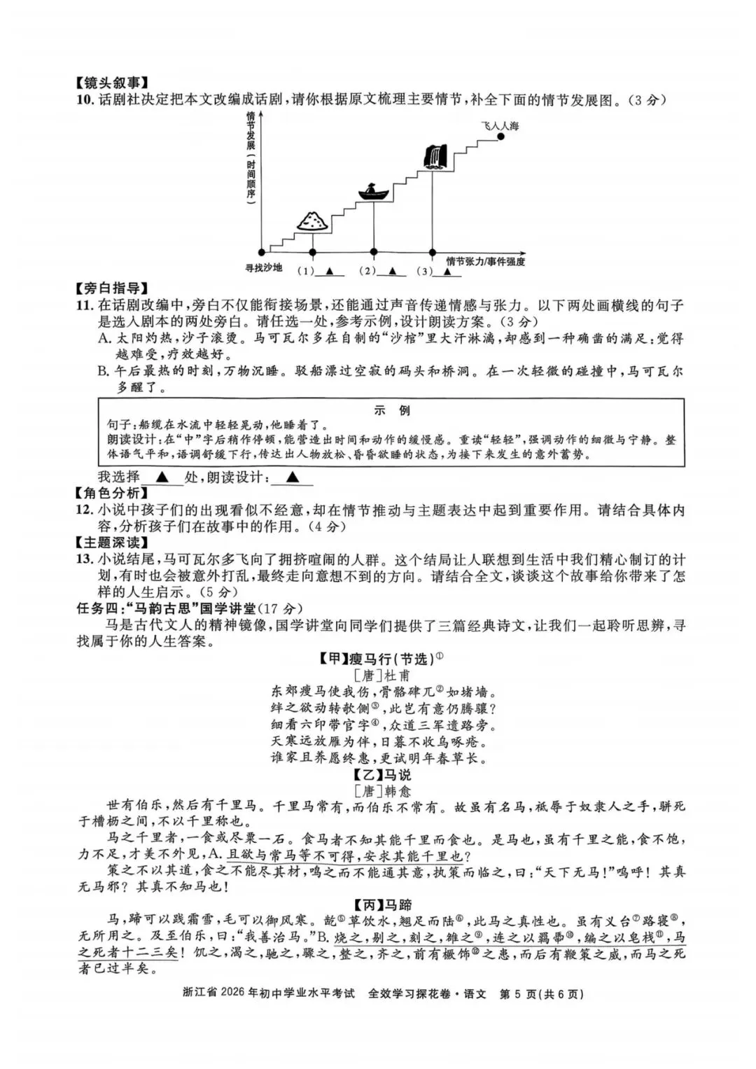 核心考点:情节发展图补全、朗读设计、人物作用分析、主题探究。