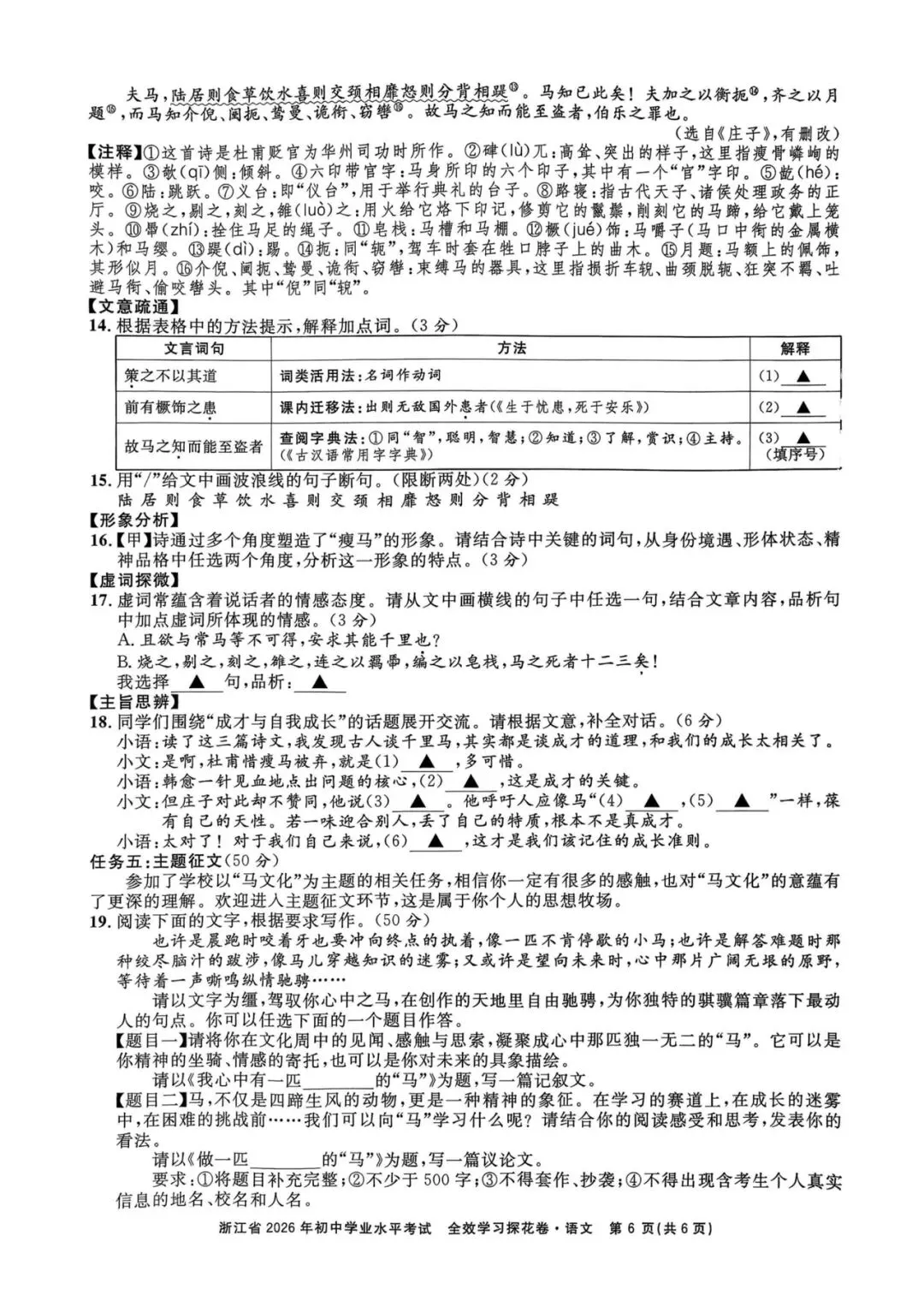 备考提示:夯实课内文言基础,学会“课内迁移法”解释课外实词;对比阅读要抓住三篇的核心观点(杜甫:怀才不遇的遗憾;韩愈:伯乐对成才的重要性;庄子:顺应天性的成长),精准作答。