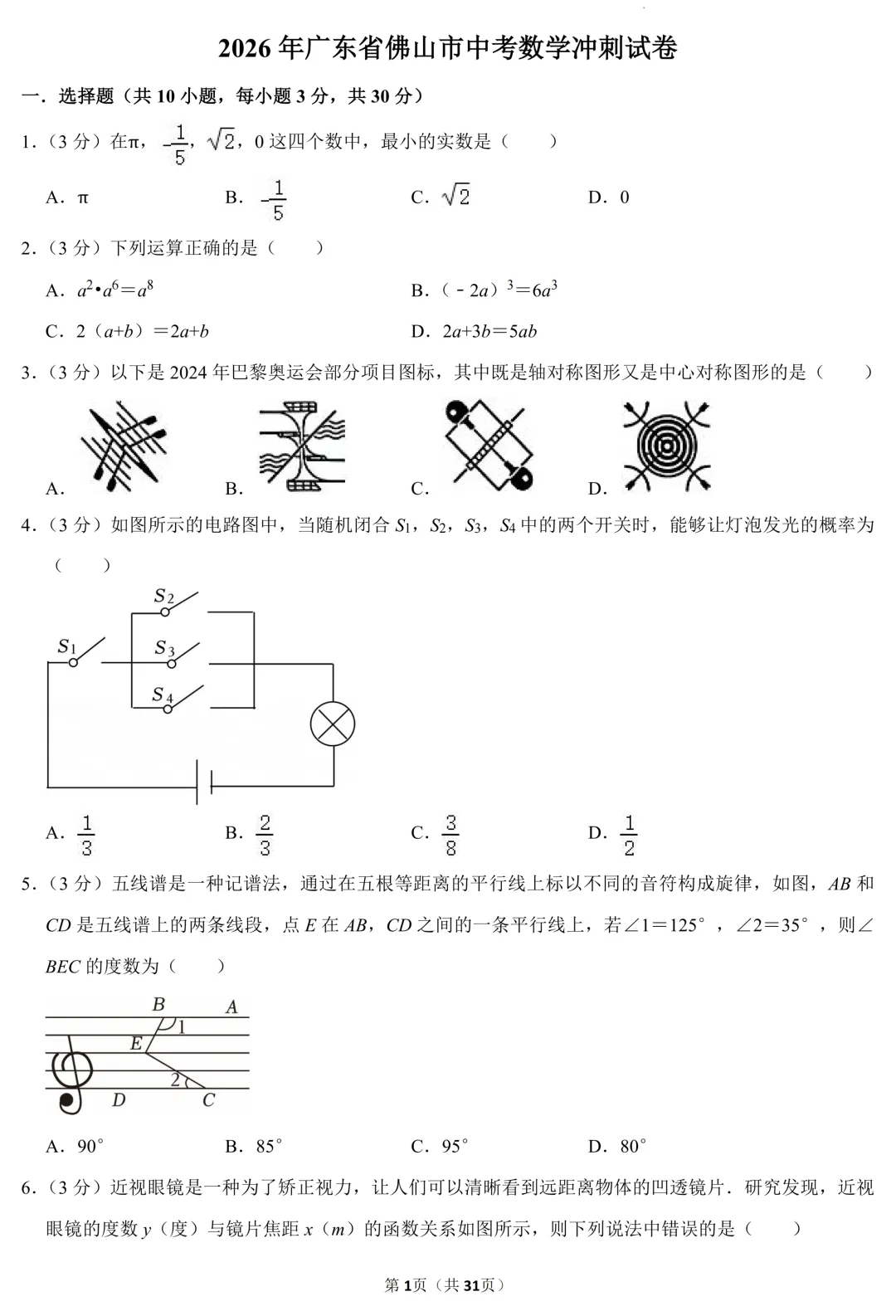 >2026年广东省佛山市中考数学冲刺试卷(含答案)