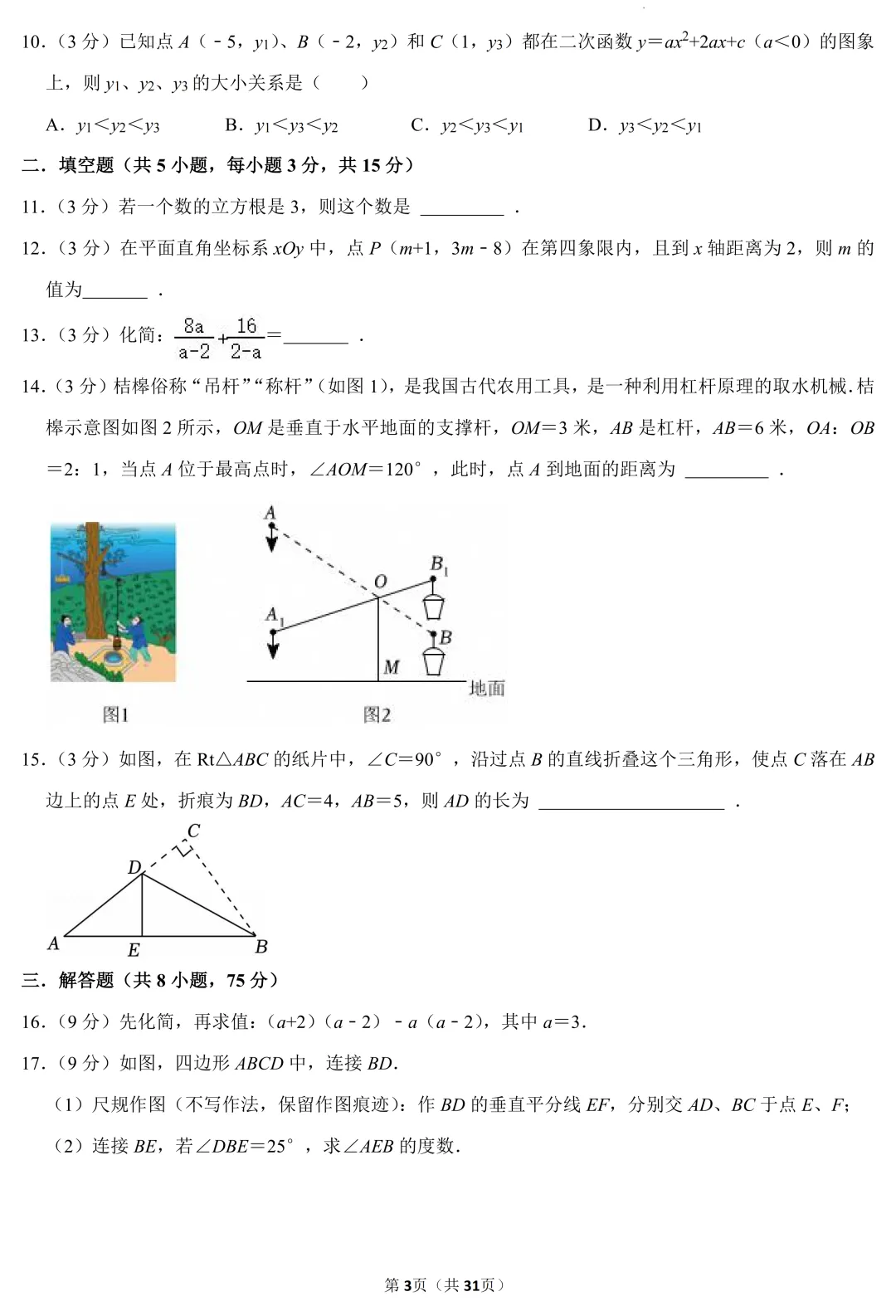 26年3月船山初三月考物理试卷分析
