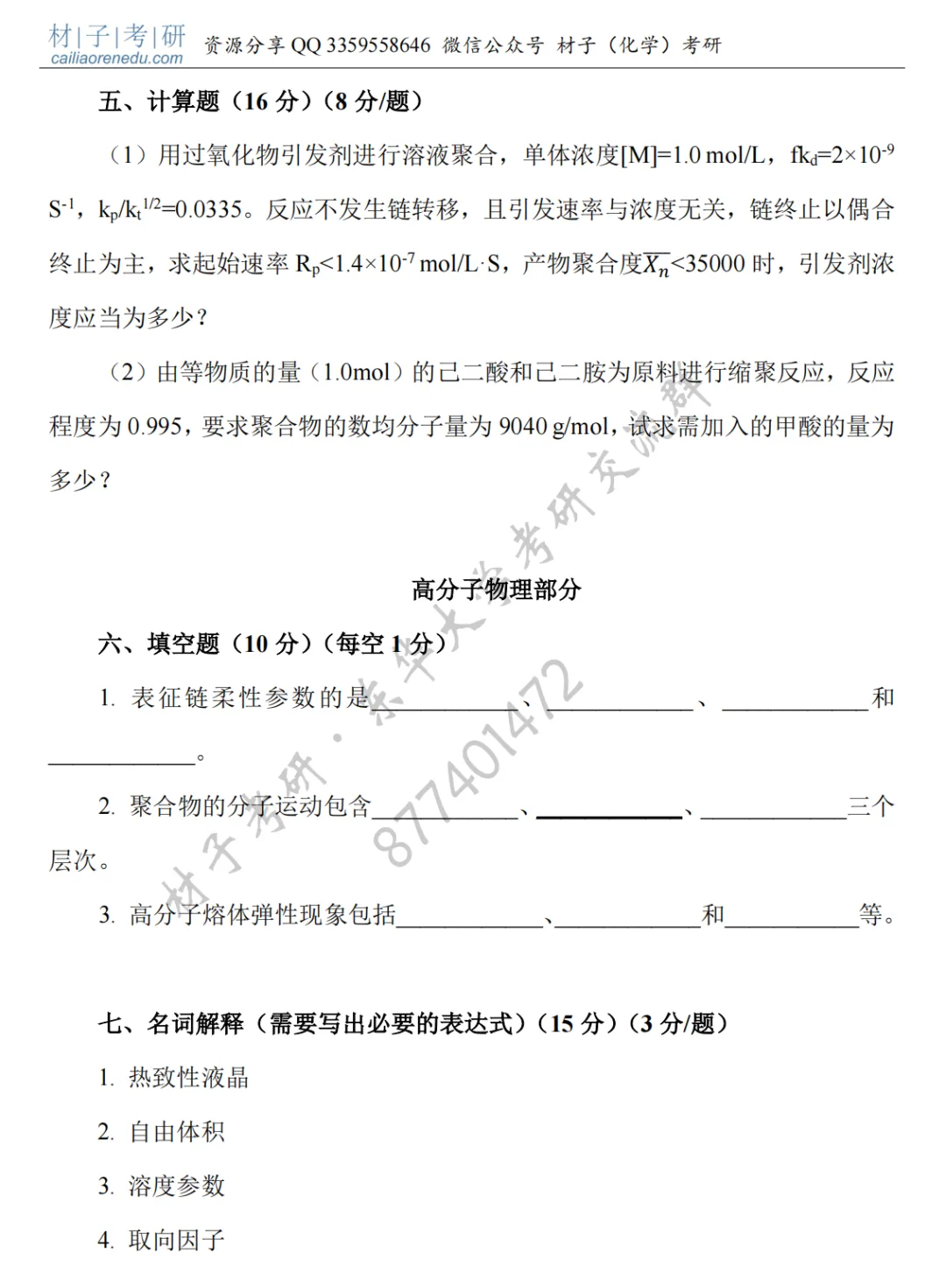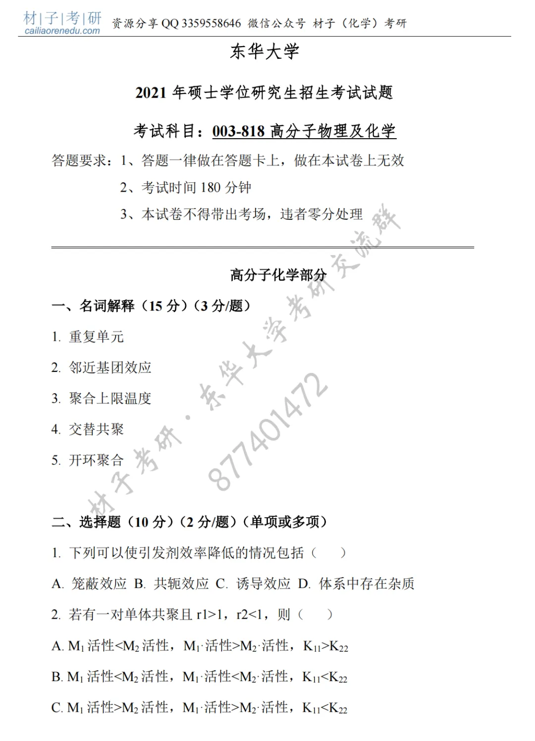 >【考研真题】2021年东华大学(818高分子物理及化学)真题公布