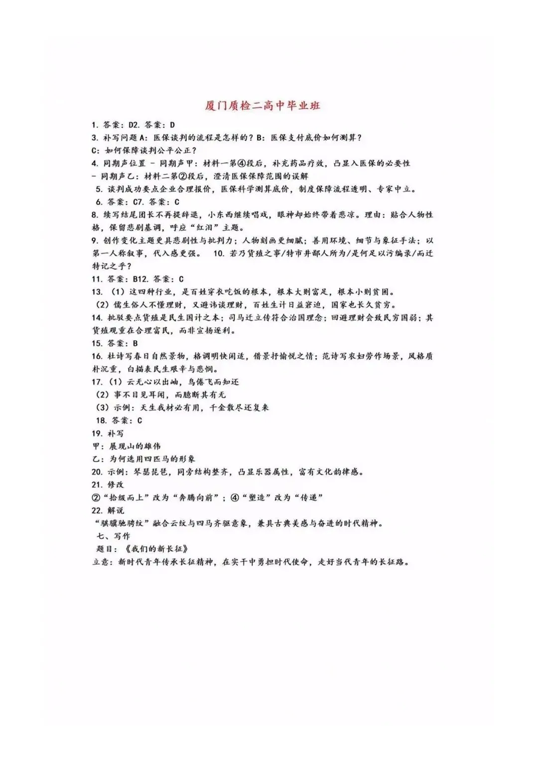 没参加本次厦门二检的同学,也可下载真题抽空刷题练手感,查漏补缺~