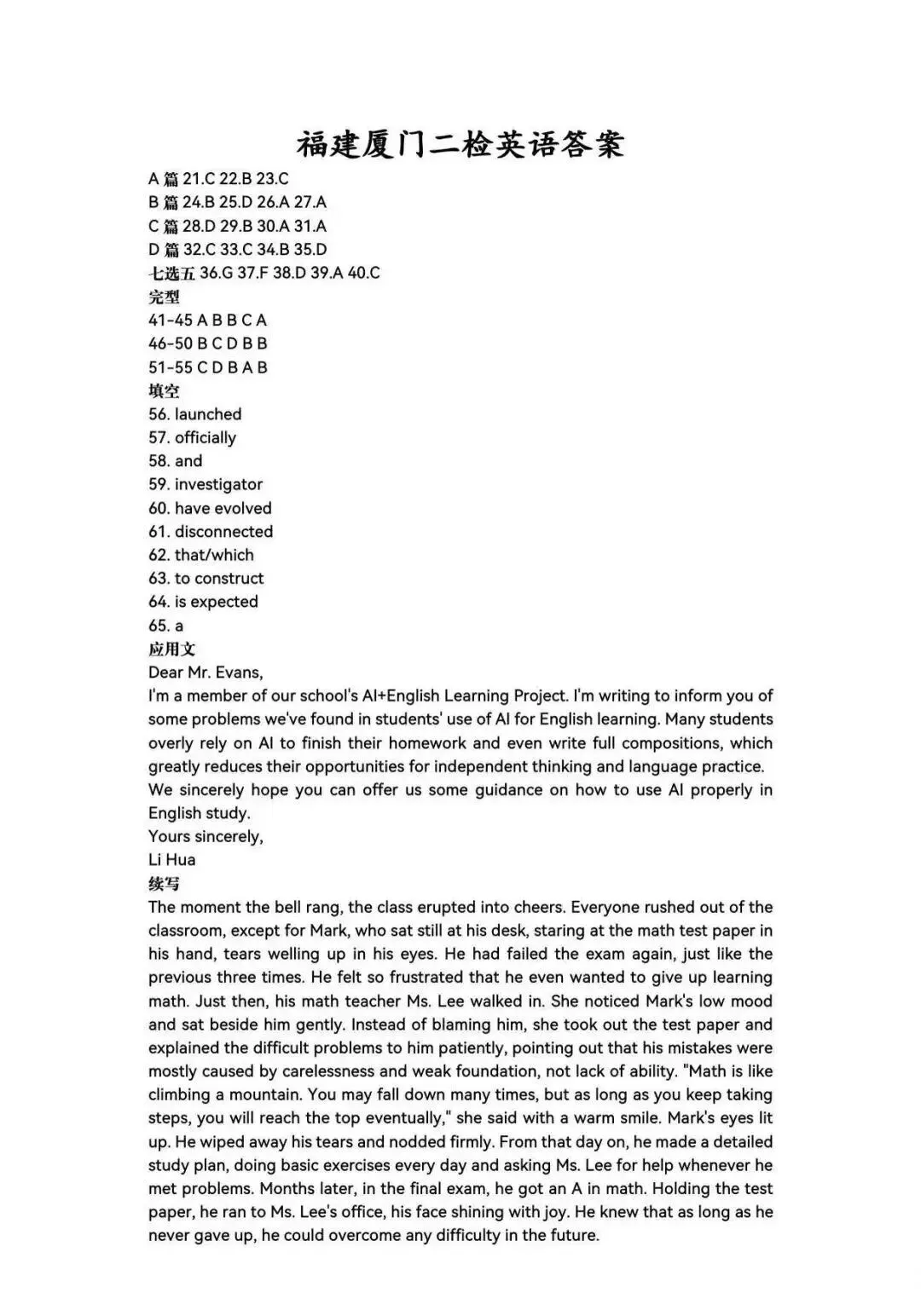 2026厦门高三二检第二日考完!大家发挥得怎么样?这次试题难度体感如何?