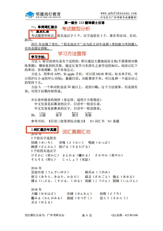 在蓝宝书各章知识点解析中中,也会说明哪些知识点是重要考点,并且注明哪些知识点是广外历年初试中曾经考过的。