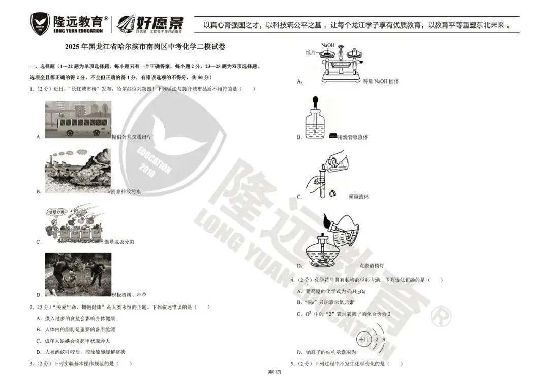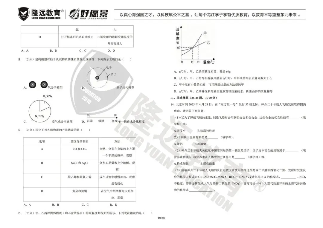 >2025年南岗区九年级化学二模试卷