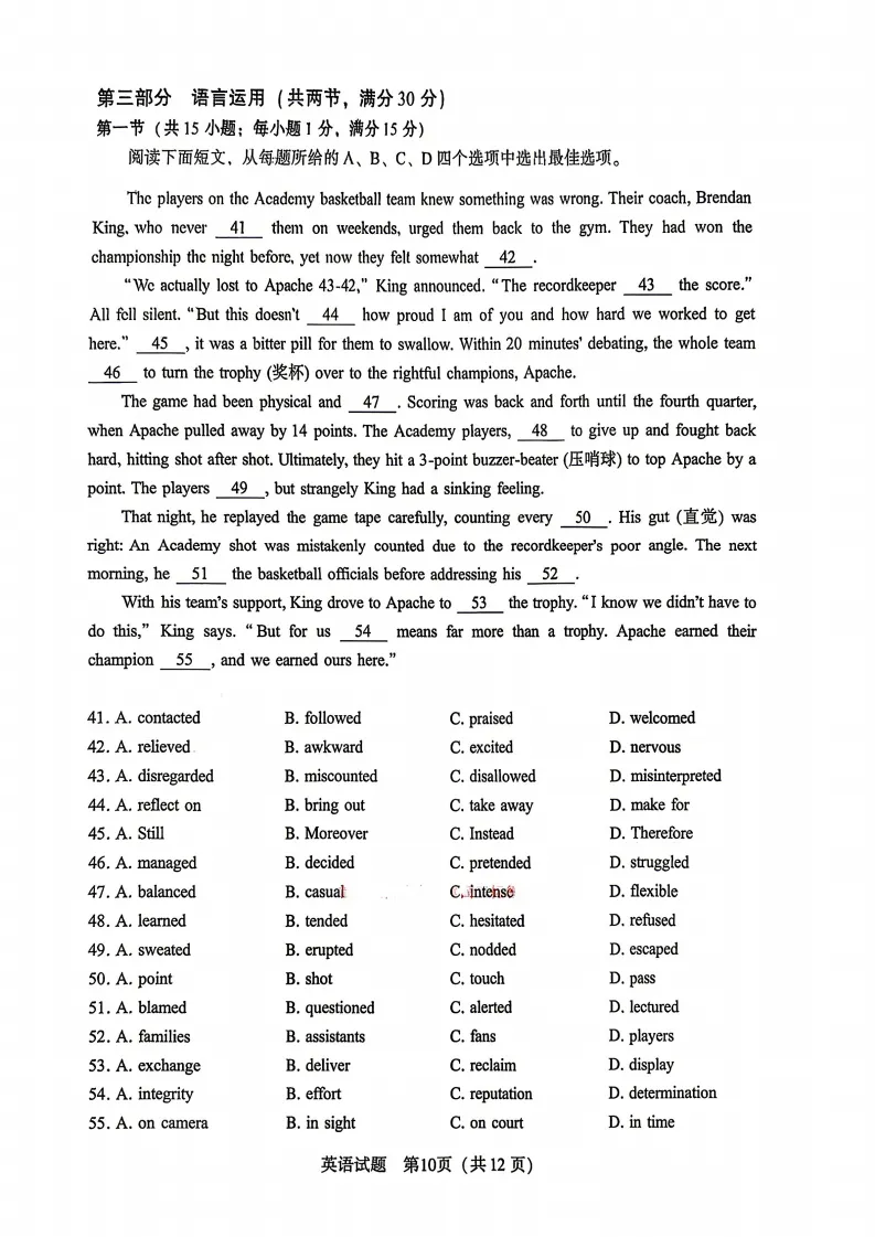 【中考】2026金中零模数学/英语试卷解析