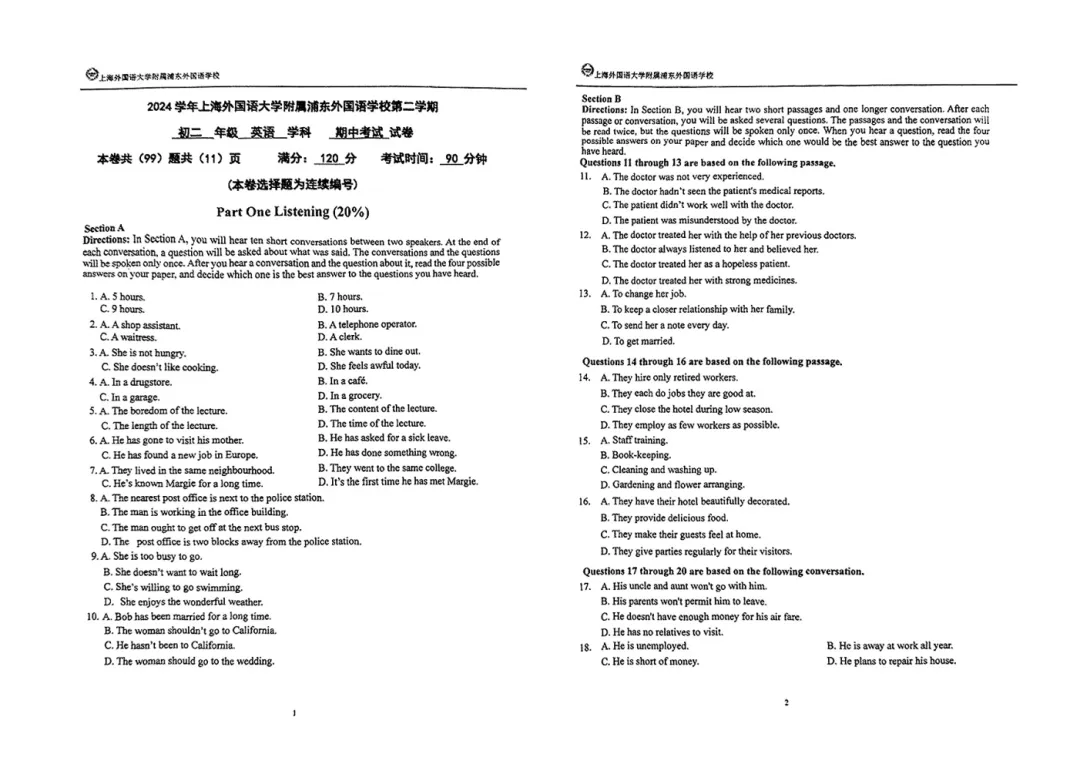 >名校期中试卷!2025年八年级英语期中试卷来了