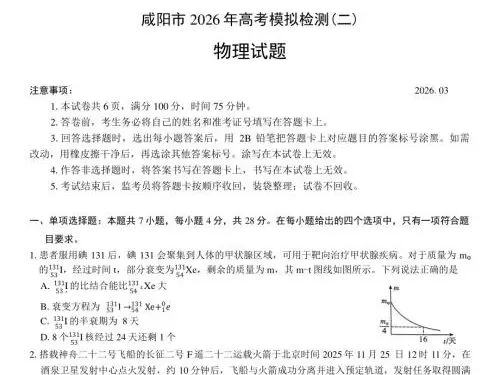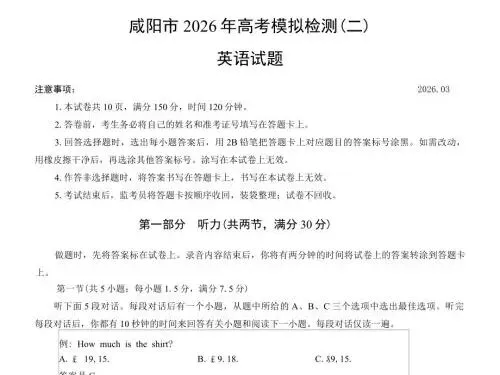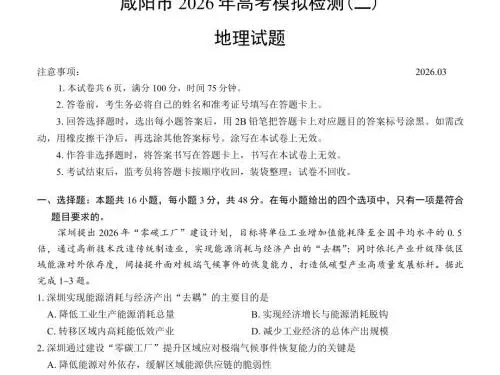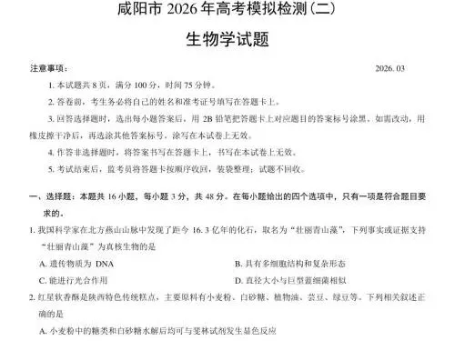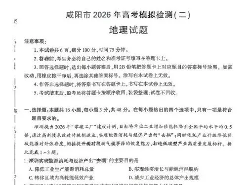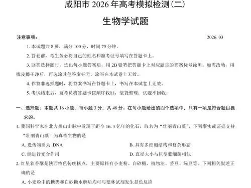 咸阳高三家长、同学们注意!2026 年咸阳市高考模拟检测(二)(咸阳二模) 已正式结束,作为高考前最关键的一次全市大统考,这份试卷的命题方向、难度梯度、考点分布,直接对标陕西新高考,是查漏补缺、精准冲刺的黄金资料!