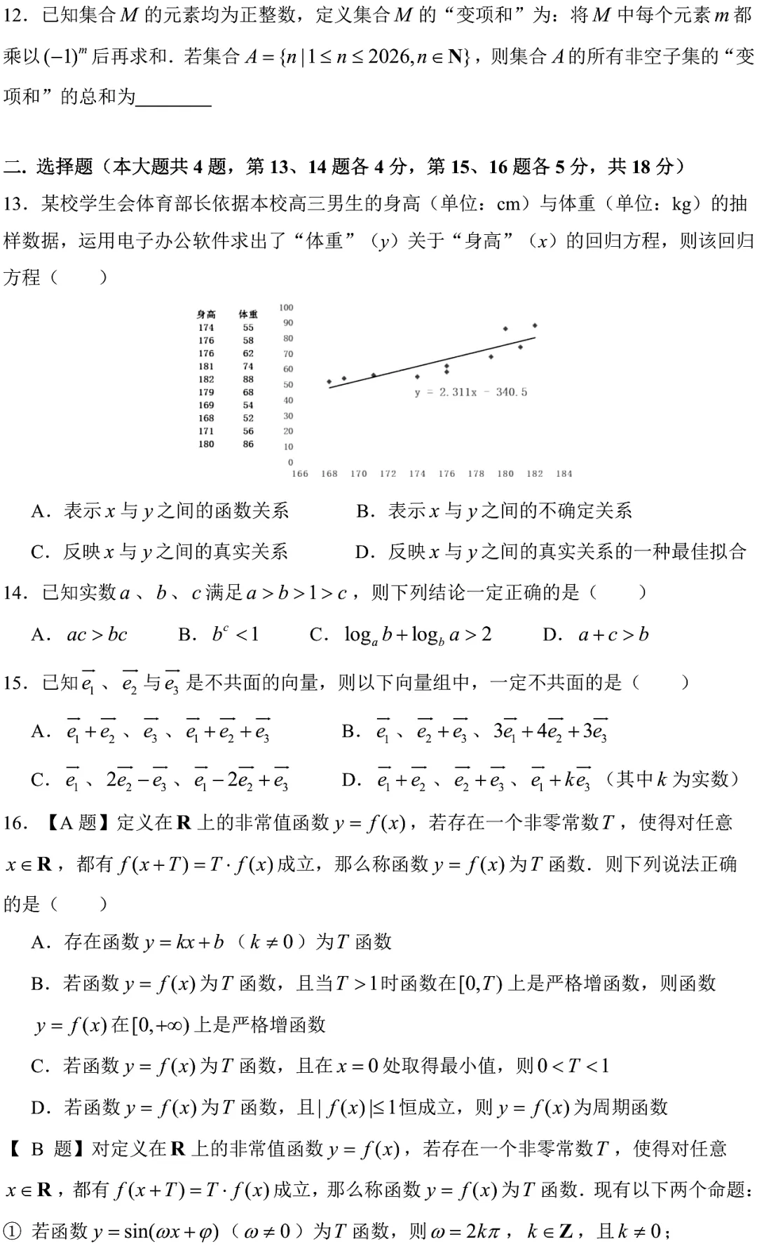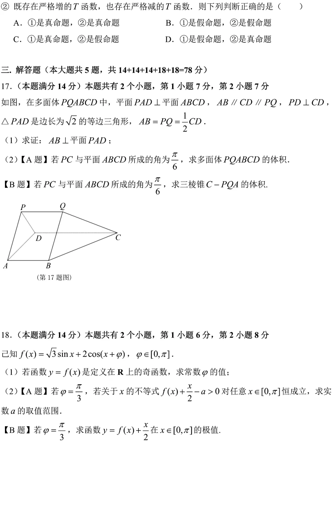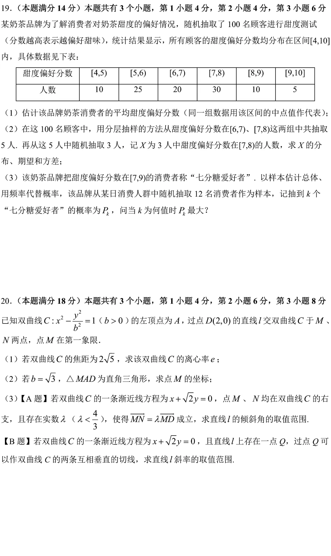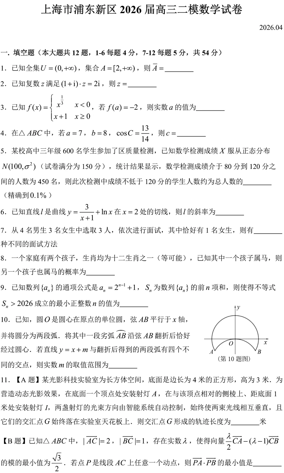 2026浦东新区高三二模数学【试卷】和【答案解析】,电子版可下载