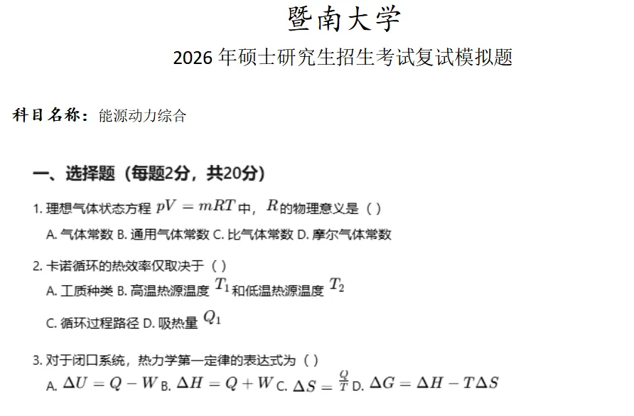 当前位置:首页>考研真题>暨南大学能源动力综合考研复试真题模拟