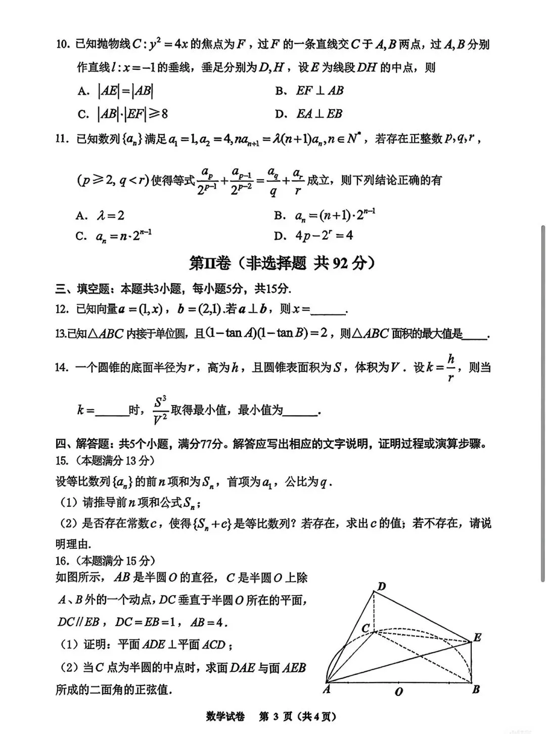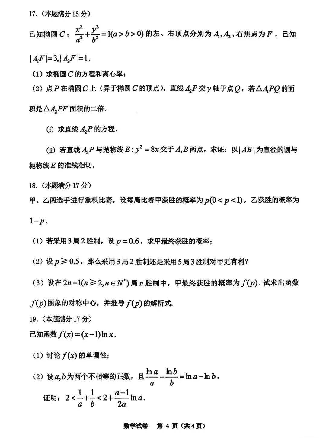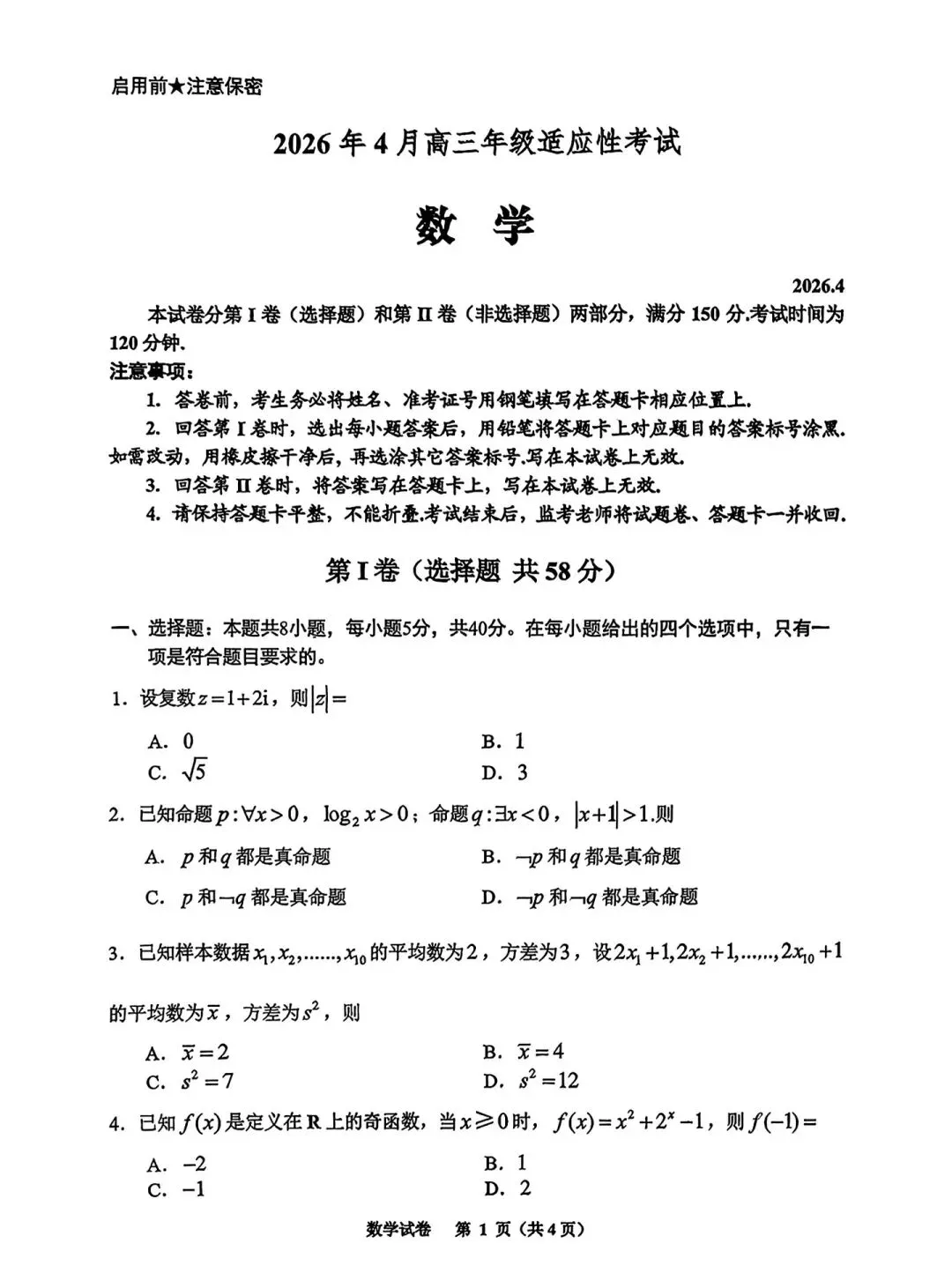 贵阳市2026年4月高三适应性考试数学试卷+答案